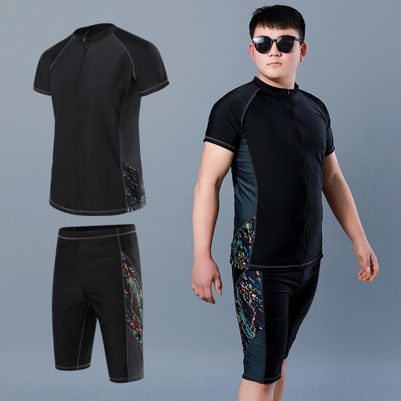 남자 수영복 플러스 비료 플러스 사이즈 수영복 스포츠 스플릿 투피스 복서 비치 속건 수영복 남성용 수영복