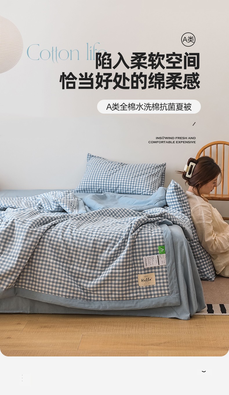 클래스 A 여름 이불 임산부 및 유아 학년 인쇄되지 않은 순면 빨 면 에어컨 이불 빨 얇은 이불 세탁기 빨 세트 3스토어 가기