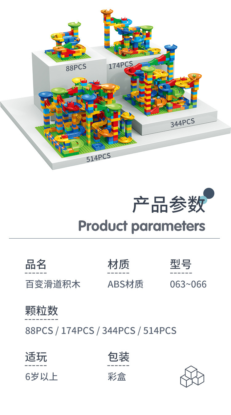 RX-32百变滑道积木 装箱规格98*28*84 装箱数量24盒 总数量是107pcs