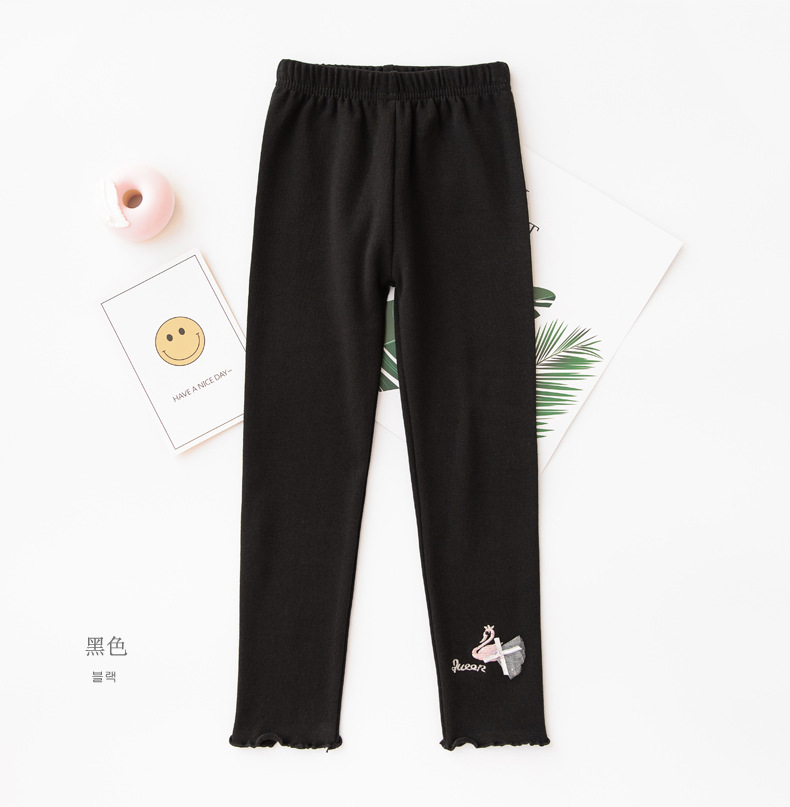 2021冬季加绒儿童裤子 卡通绣花女童打底裤 羊羔绒加绒保暖童裤子RMB:19.3
