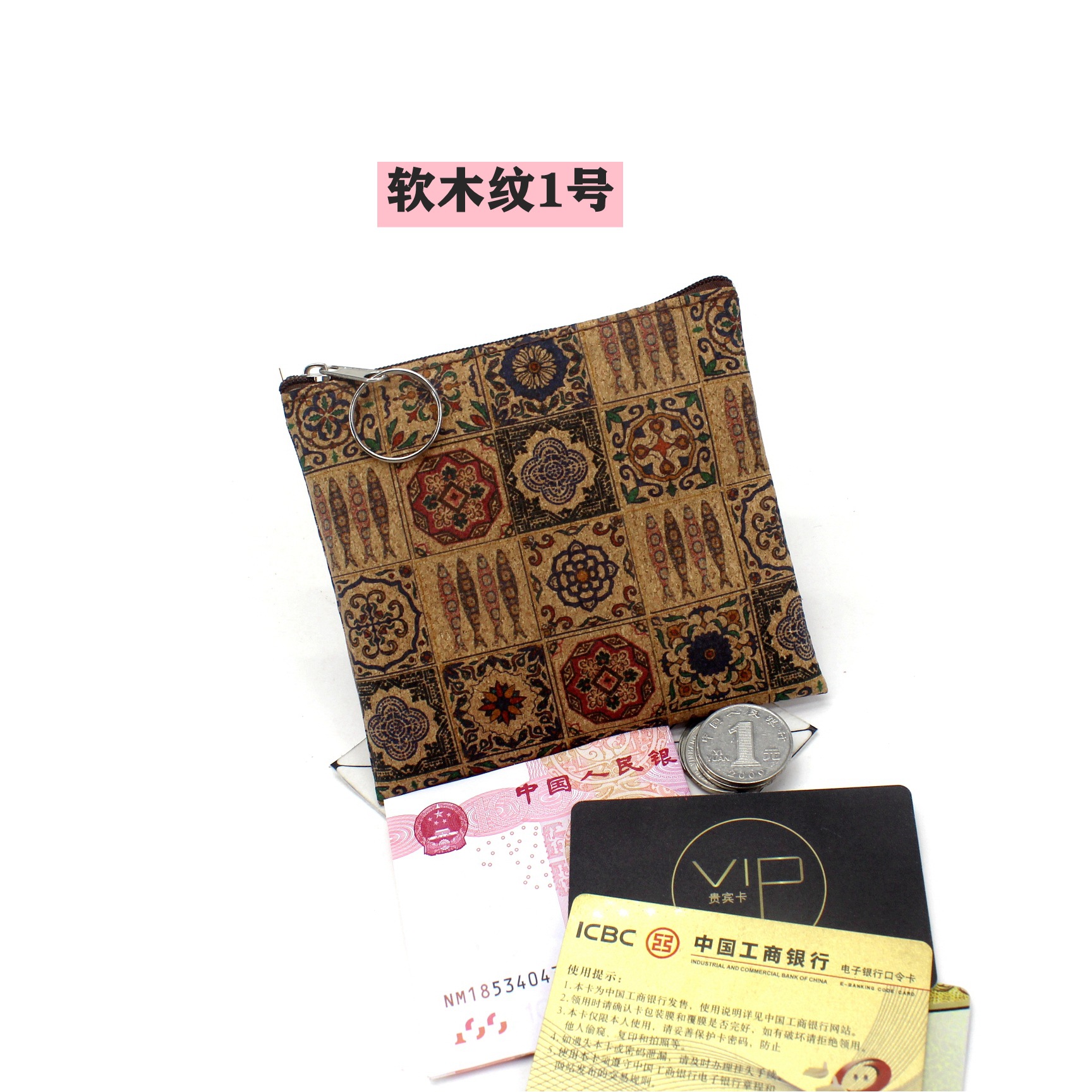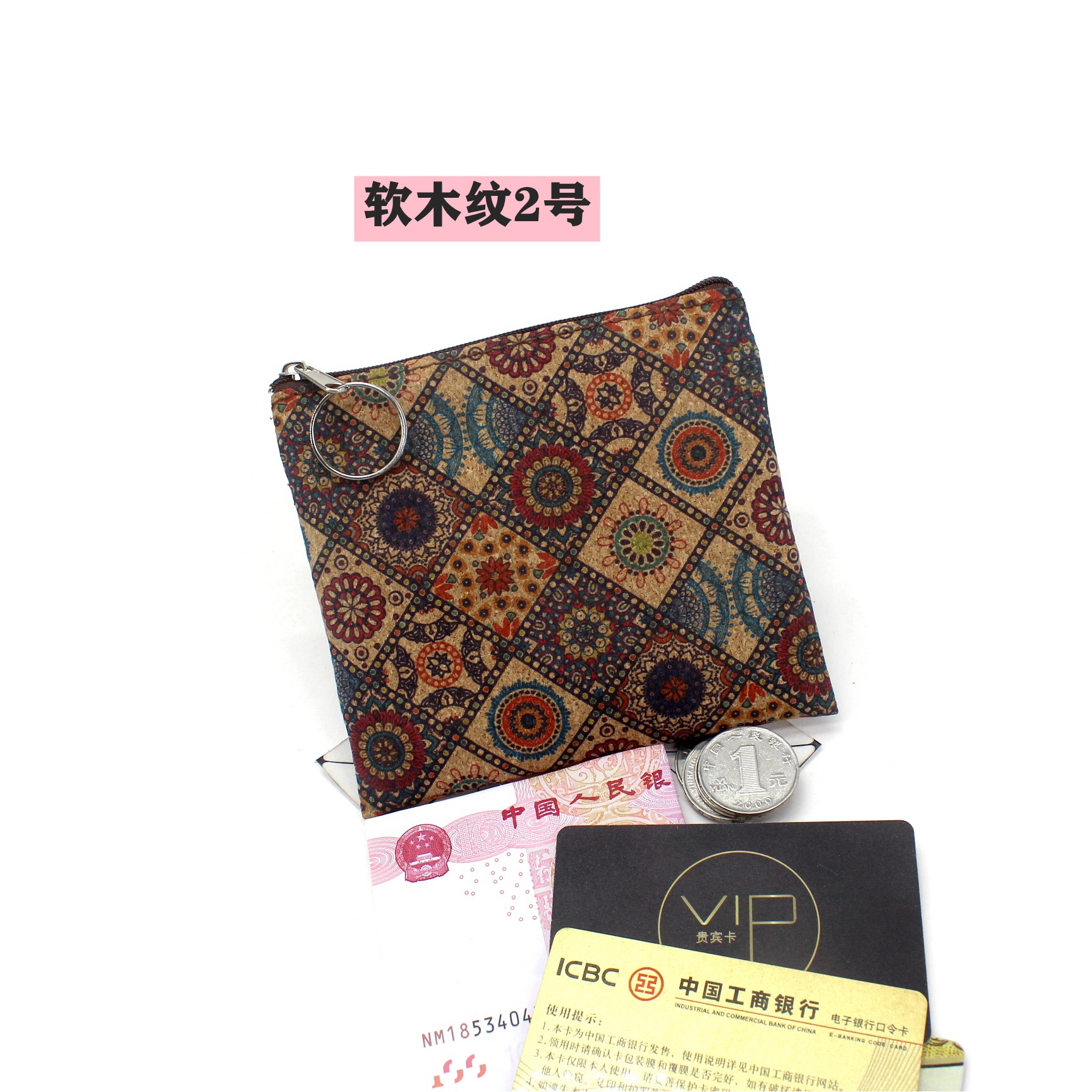 빈티지 리얼 우드 코르크 인쇄 동전 지갑 껍질 동전 가방 열쇠 작은 사각형 가방 캐주얼 향수 클러치