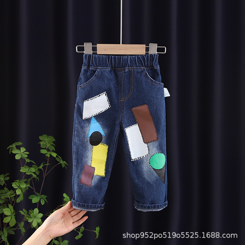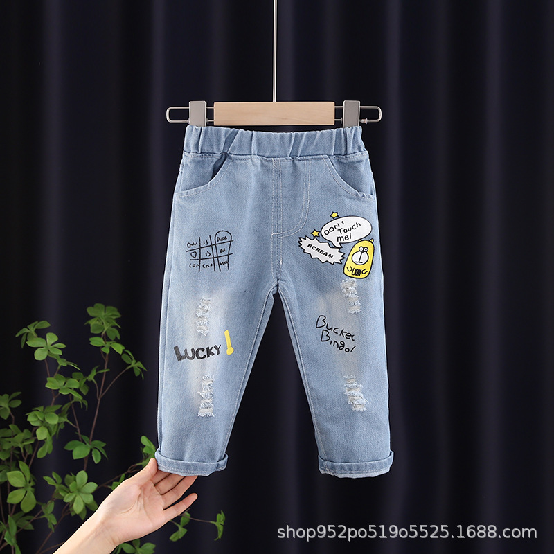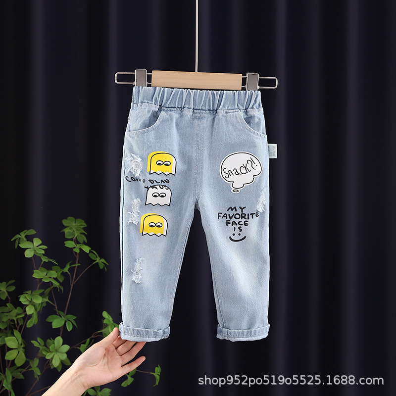 아동복 남아 캐주얼 바지 봄과 가을 만화 귀여운 새로운 봄과 가을 의류 중소형 어린이를위한 트렌디 한 청바지스토어 가기