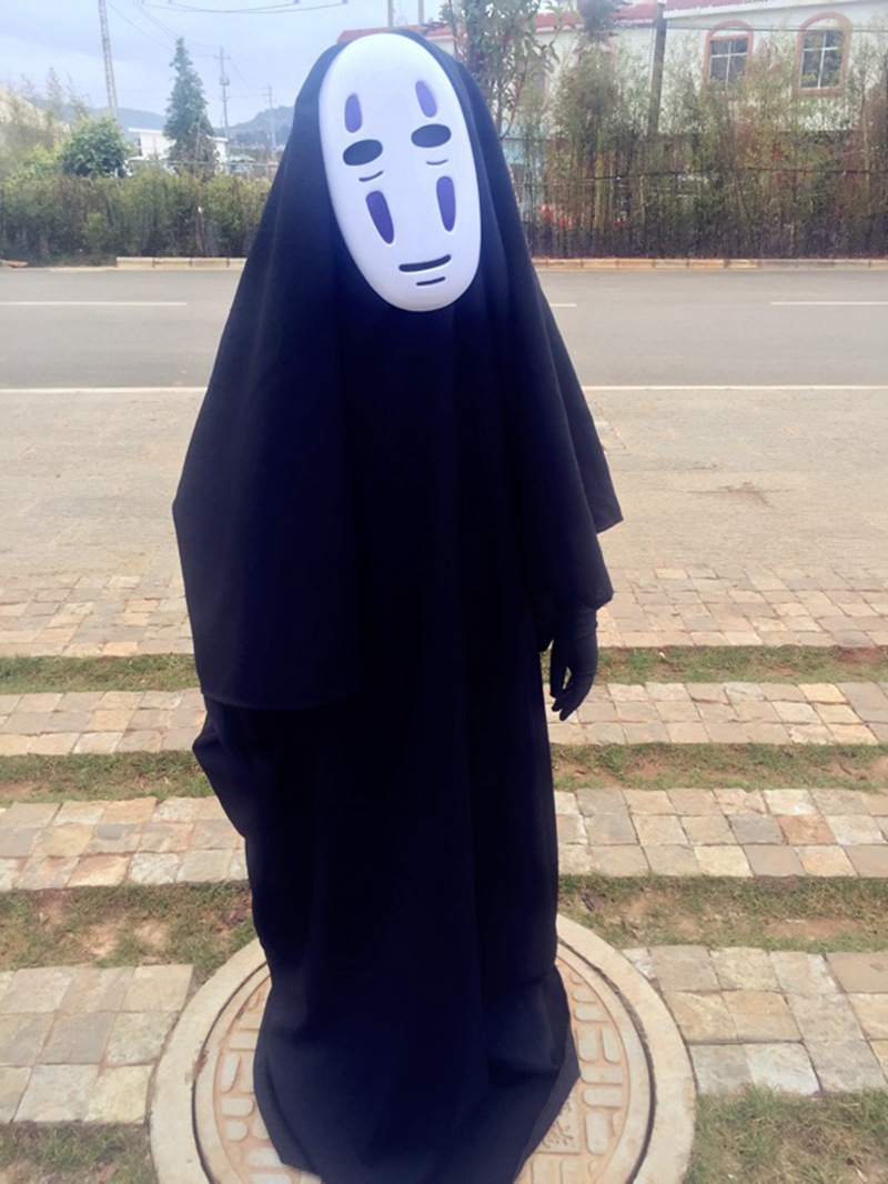 치히로의 치히로 얼굴없는 남성 코스프레 애니메이션 마스크 장갑 기모노 할로윈 유령 의상 망토 공연 의상스토어 가기