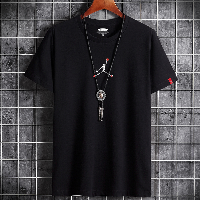 남성용 반팔 티셔츠 여름 신상 라운드넥 면 소재 트렌디 루즈핏 남성용 홍콩 스타일 학생 상의 베이직 반팔 티셔츠