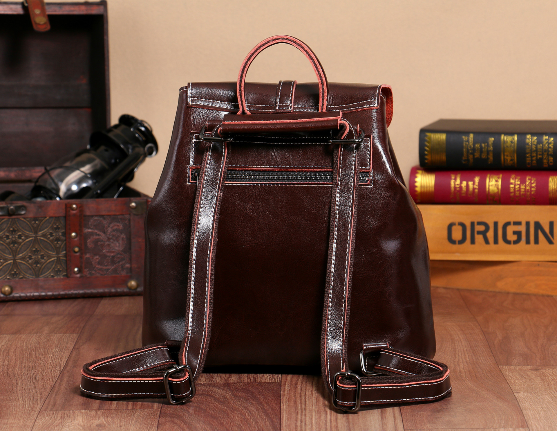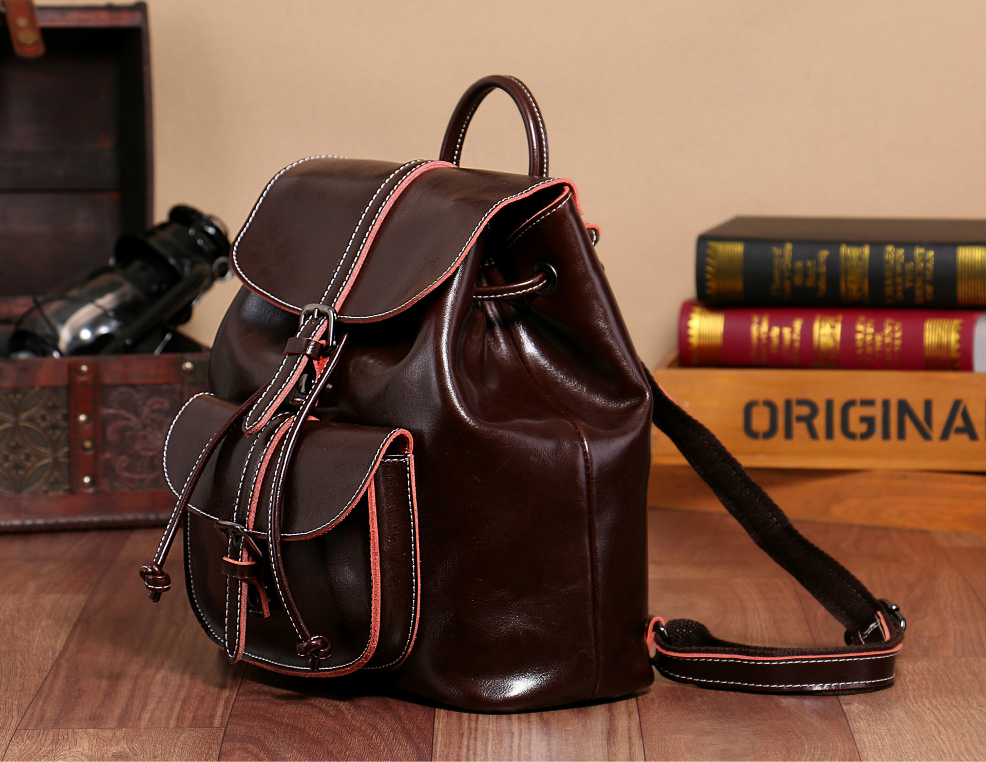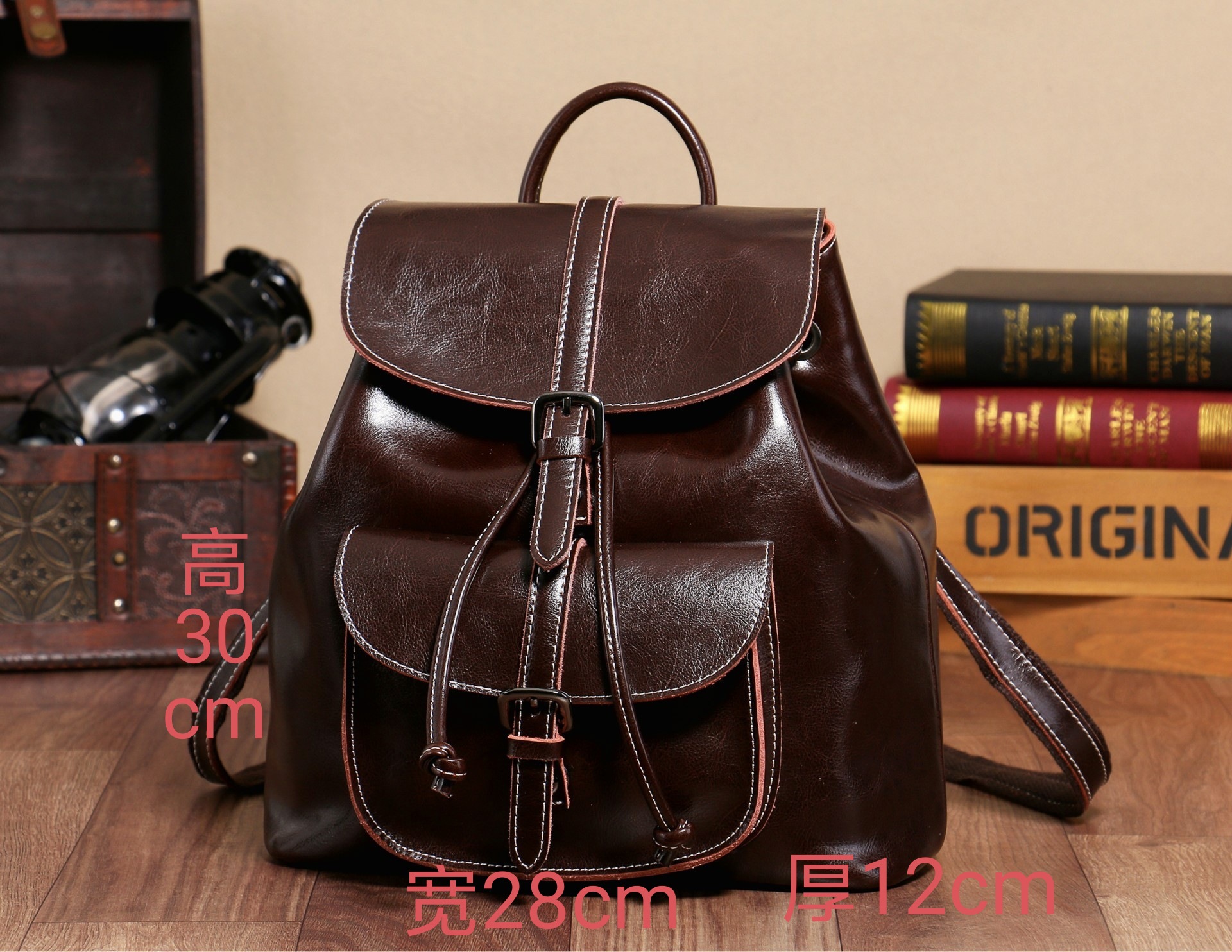 2025 새로운 오일 왁스 Cowhide 포켓 배낭 니핑 플립 한국 정품 가죽 대형 가방 여성 가방 도매스토어 가기