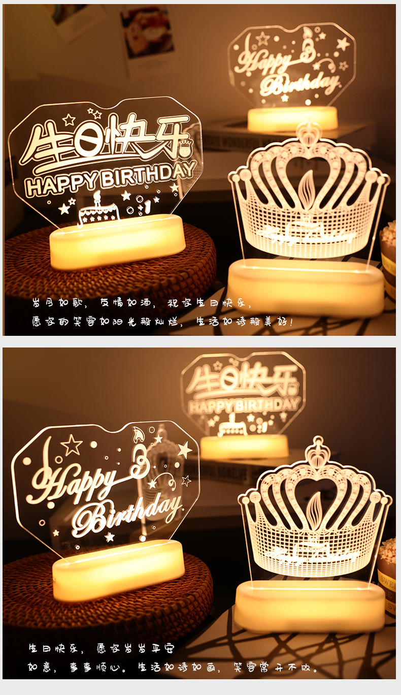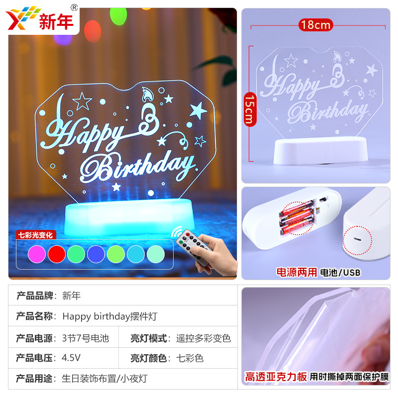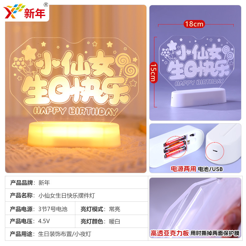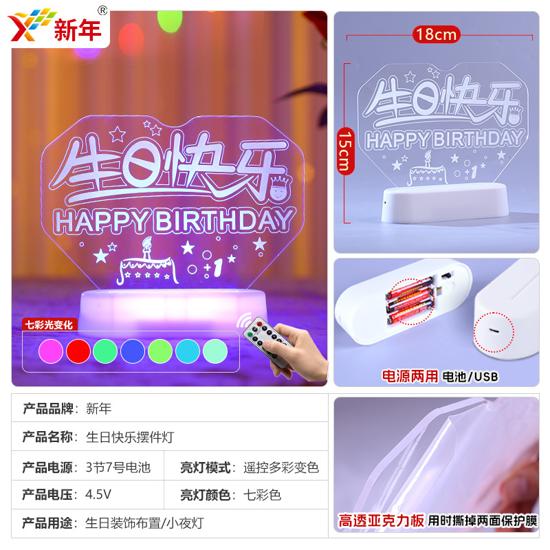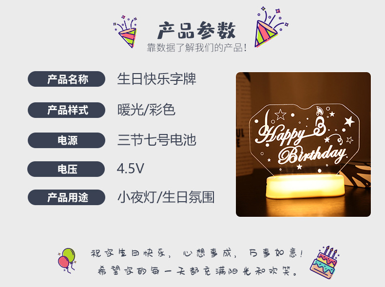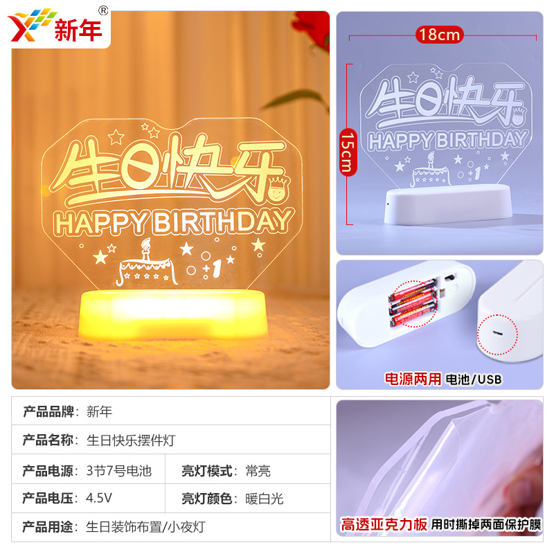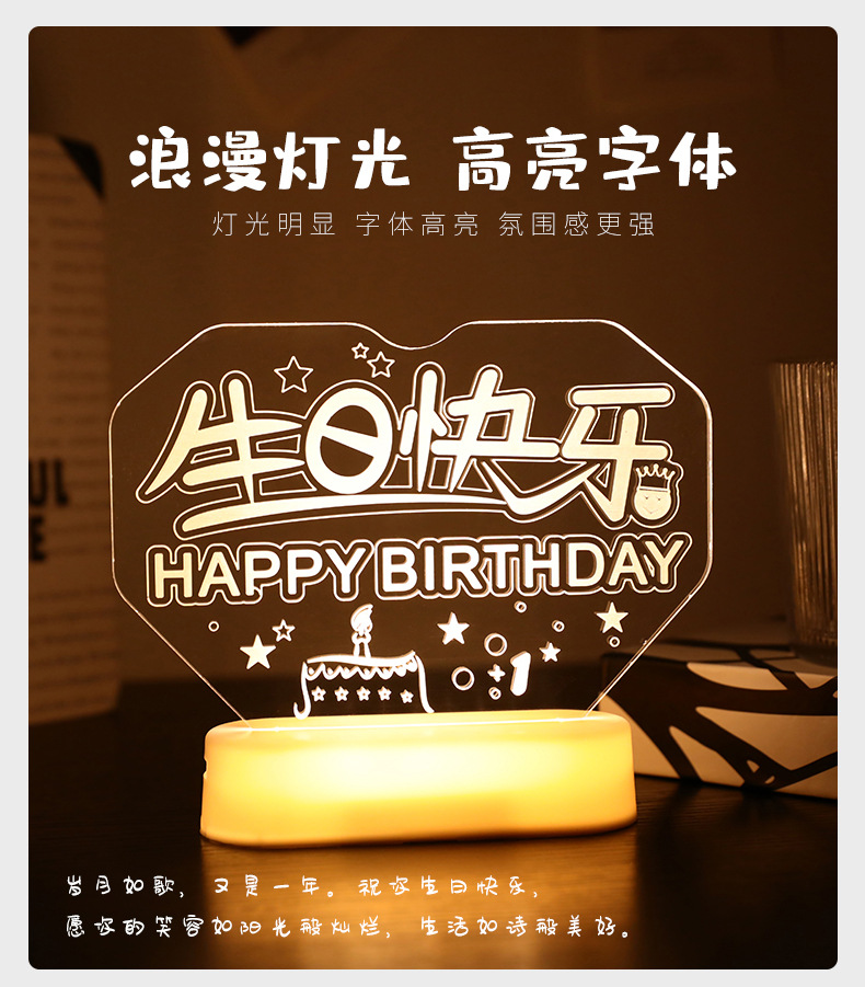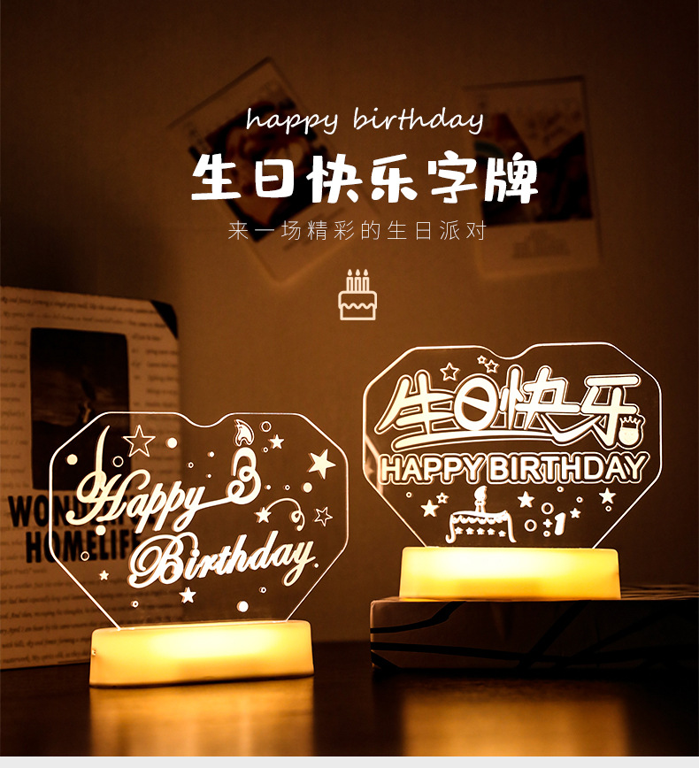 빛나는 글자 생일 축하 조명 간판 LED 생일 분위기 장식 데스크탑 장식 네온 조명 장식품
