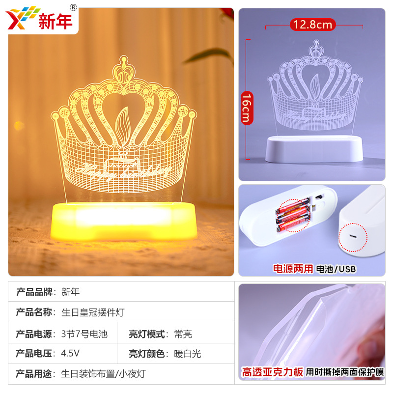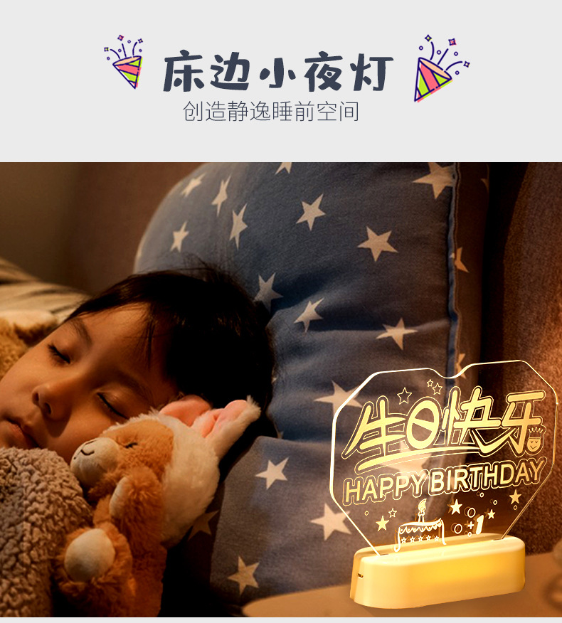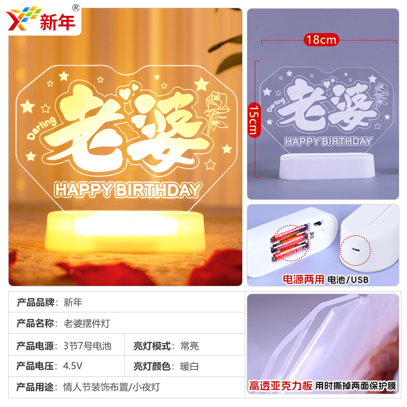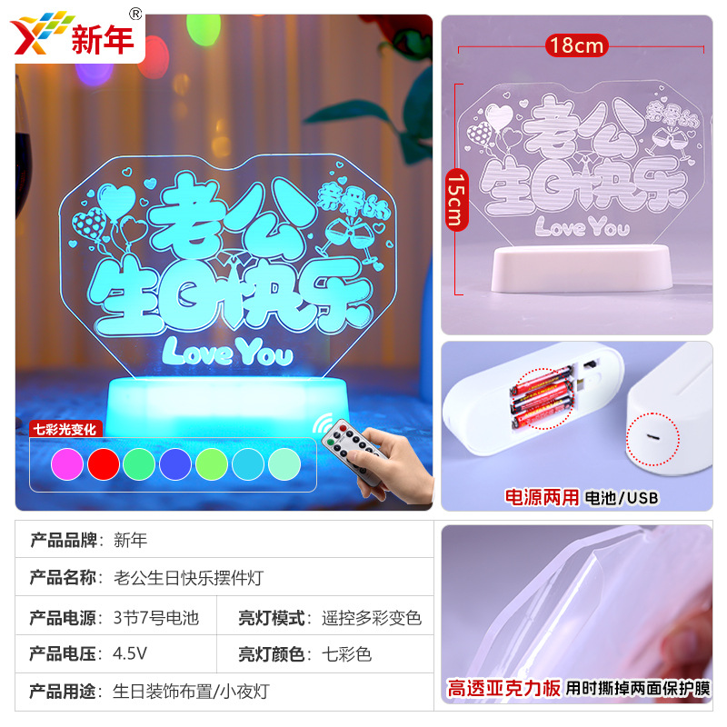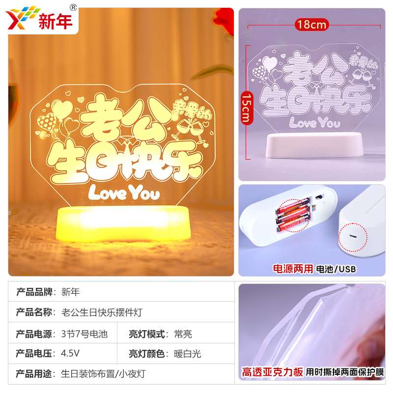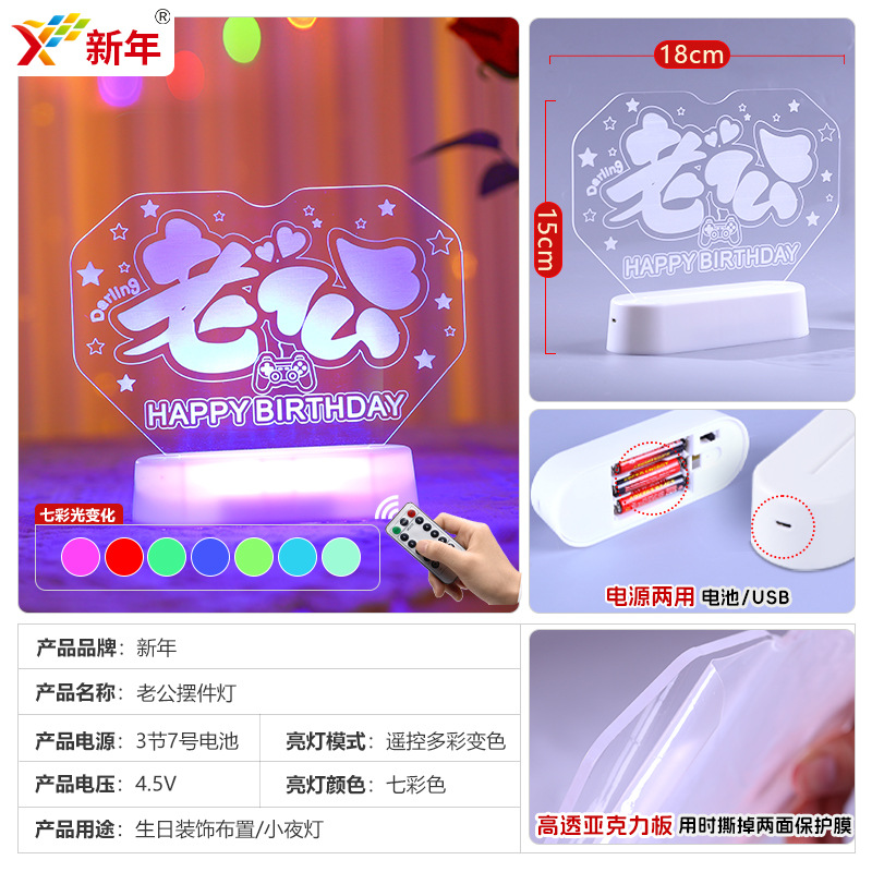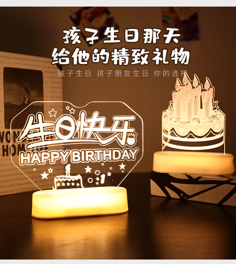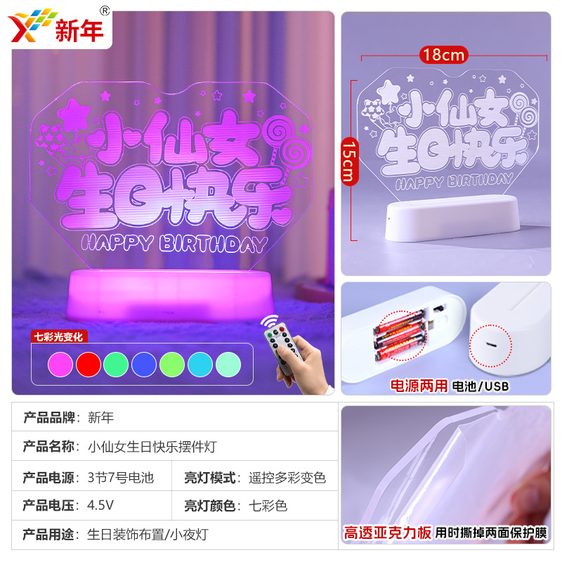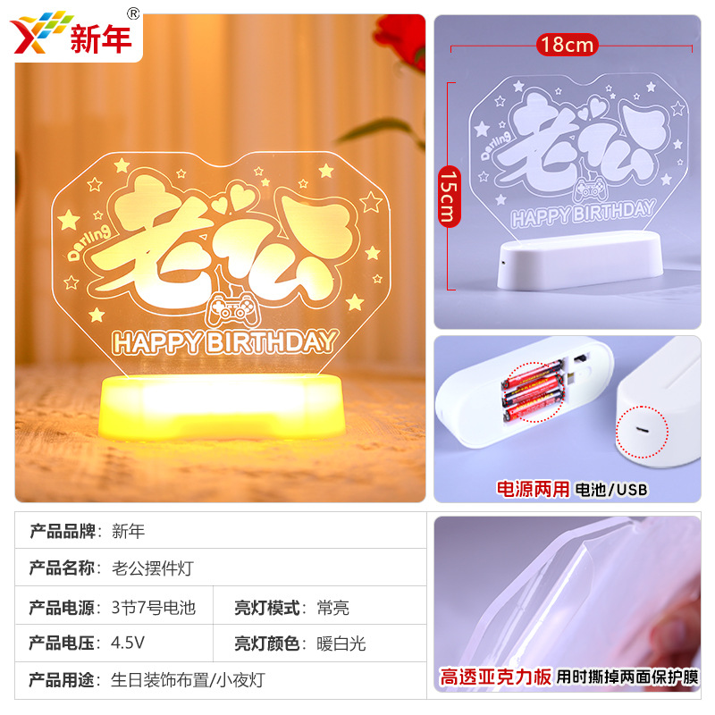 빛나는 글자 생일 축하 조명 간판 LED 생일 분위기 장식 데스크탑 장식 네온 조명 장식품