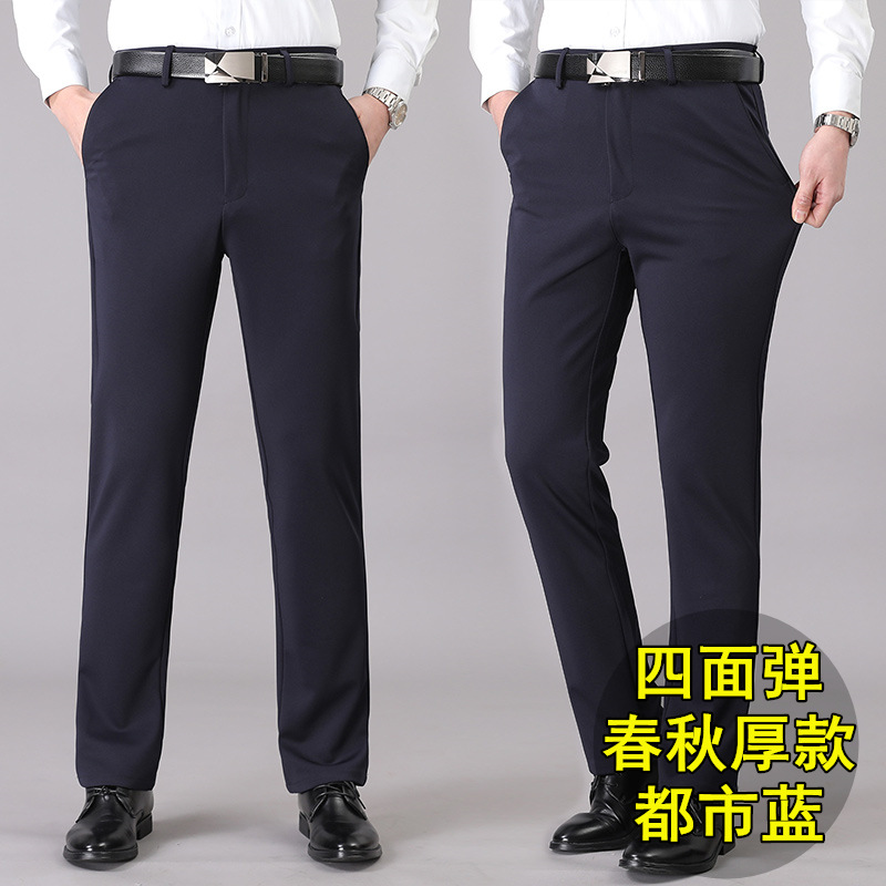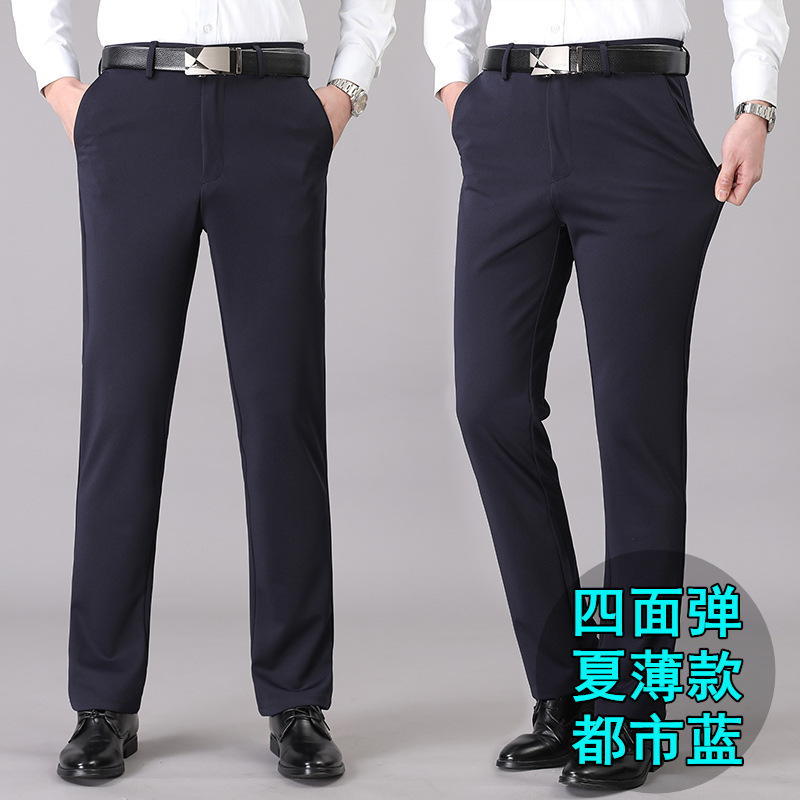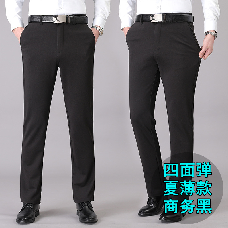비즈니스 캐주얼 바지 남성 정장 바지 여름 얇은 탄성 두꺼운 남성 바지 중년 느슨한 스트레이트 정장 바지 남성 봄, 가을스토어 가기