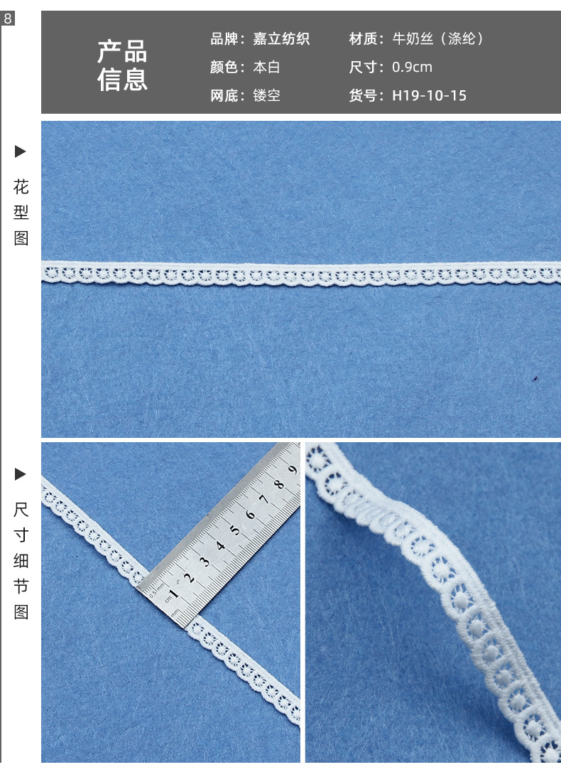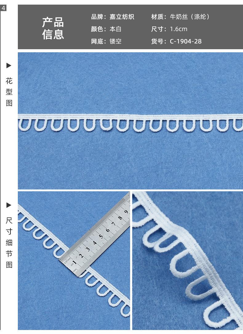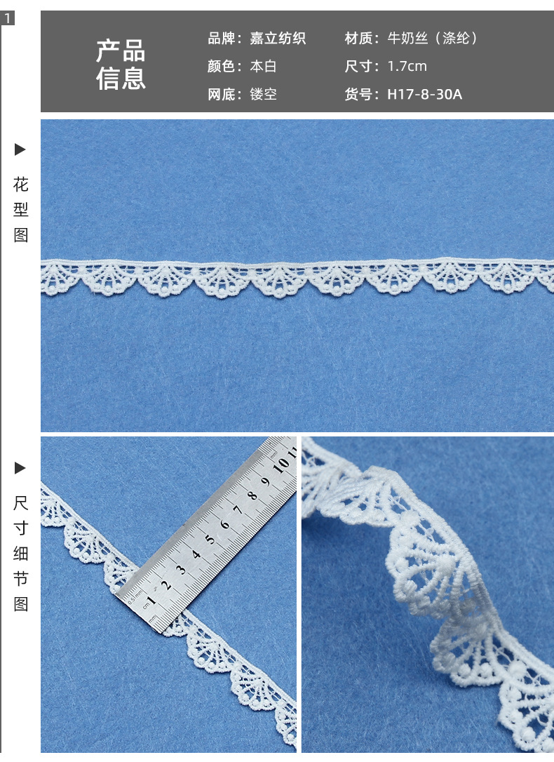 새로운 재고 일방적 인 흰색 자수 레이스 수용성 우유 실크 컴퓨터 자수 레이스 소형 바코드 아동 의류 액세서리스토어 가기
