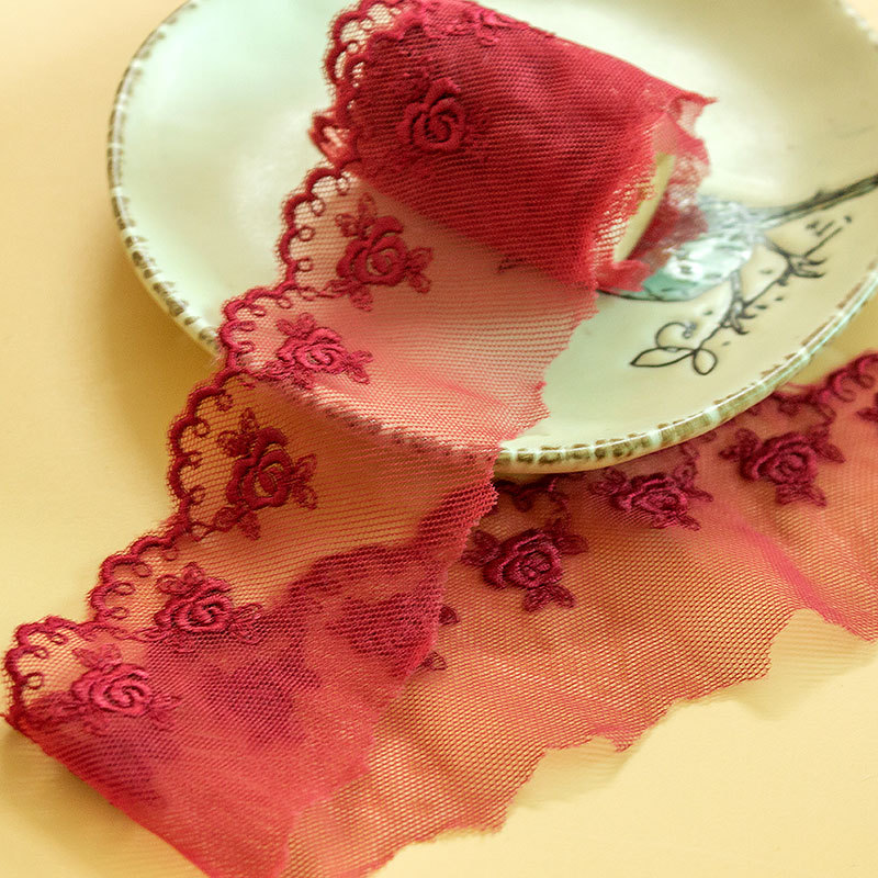 천연 레이스 장식 소재 폭 4.5m 컬러풀한 장미꽃 인조 실크 로리타 스커트 의류 헤어 액세서리 레이스 소재