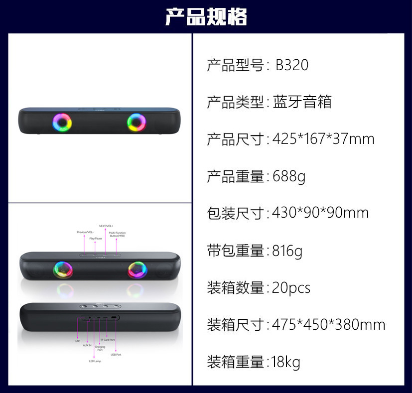 썬더 울프 B320 블루투스 스피커 데스크탑 서브 우퍼 노트북 휴대 전화 사용 가능 카드 오디오 크로스 보더스토어 가기