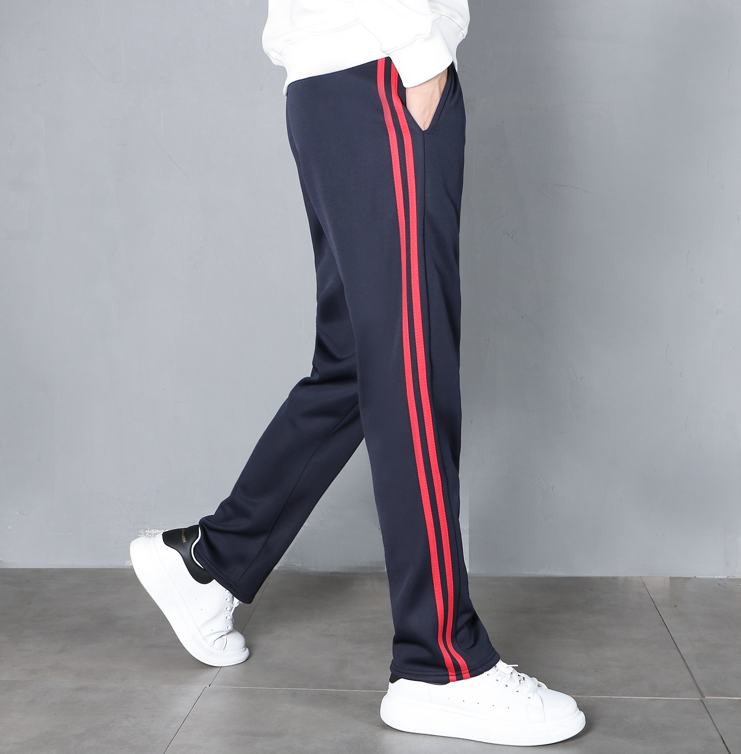 • 검은 바지 더블 레드 스트립