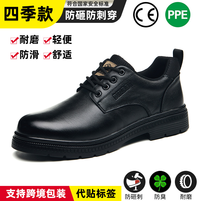 국경 간 노동 보호 신발, 충격 방지 및 펑크 방지, 남성용 작업 여름 통기성 및 내마모성 안전화, 건설 현장 1층 소가죽