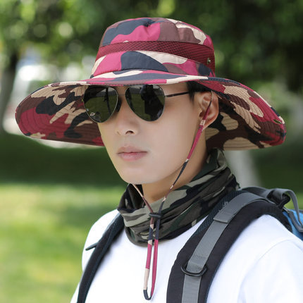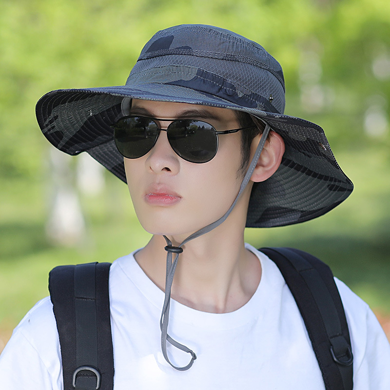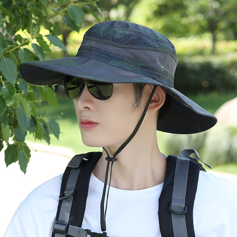 어부 모자 남성용 여름 모자 위장 큰 챙 차양 모자 야외 등산 태양 모자 남성용 사이클링 여행