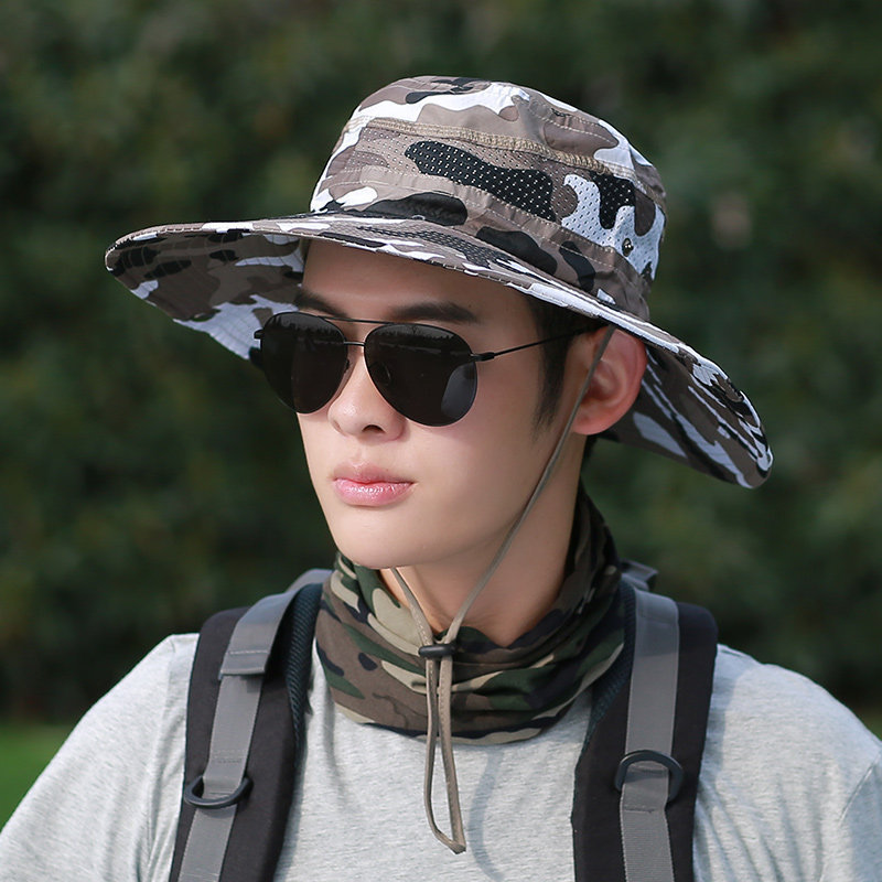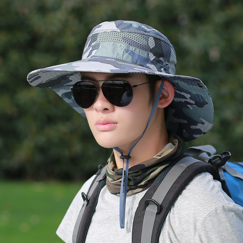 어부 모자 남성용 여름 모자 위장 큰 챙 차양 모자 야외 등산 태양 모자 남성용 사이클링 여행스토어 가기