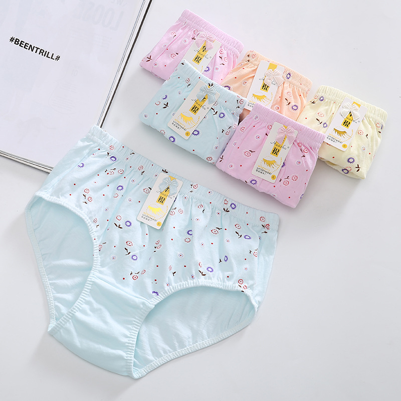 Huazhu 중년 및 노년의 퓨어 코튼 속옷 여성 브리프 반바지 플러스 뚱뚱한 엄마 늙은 아가씨 느슨한 어머니의 바지 면화