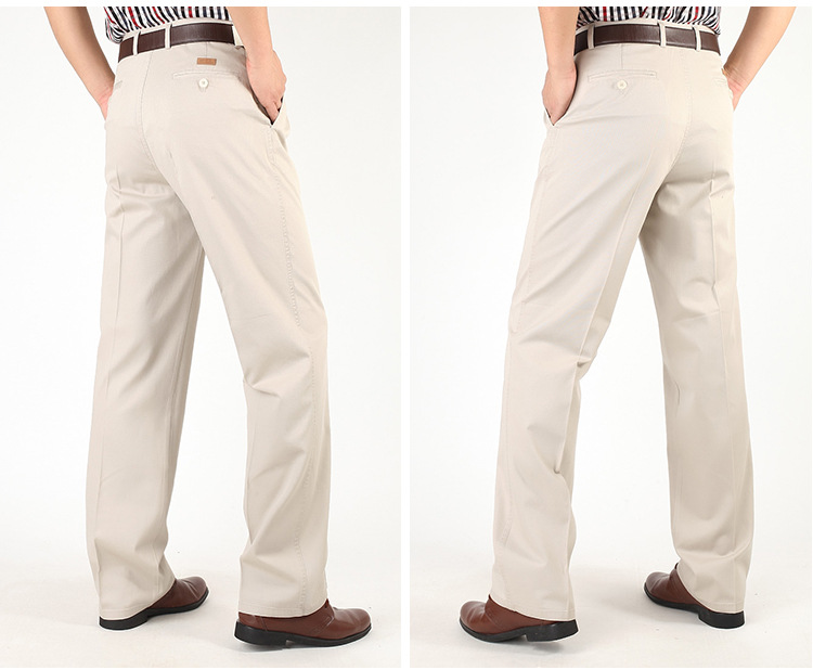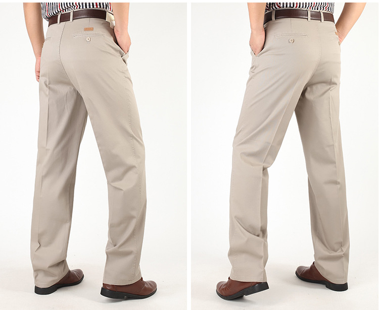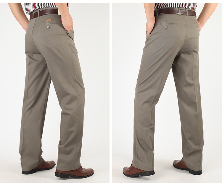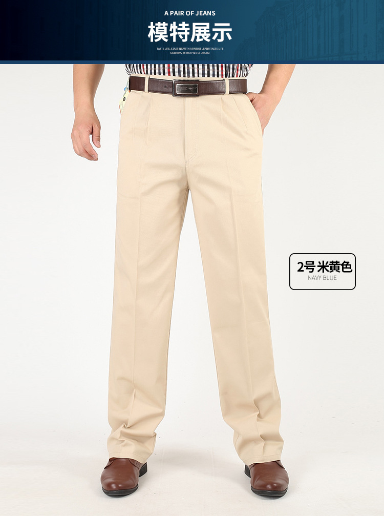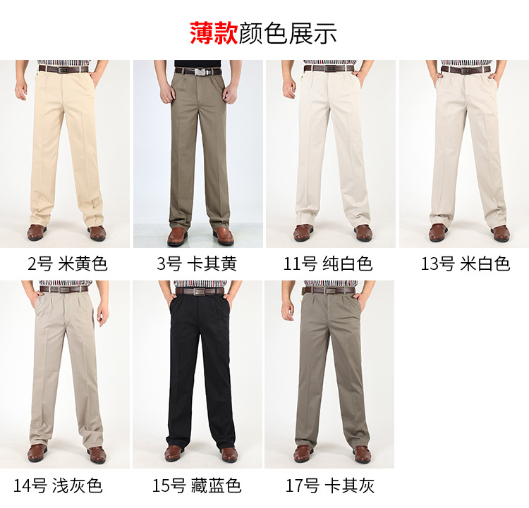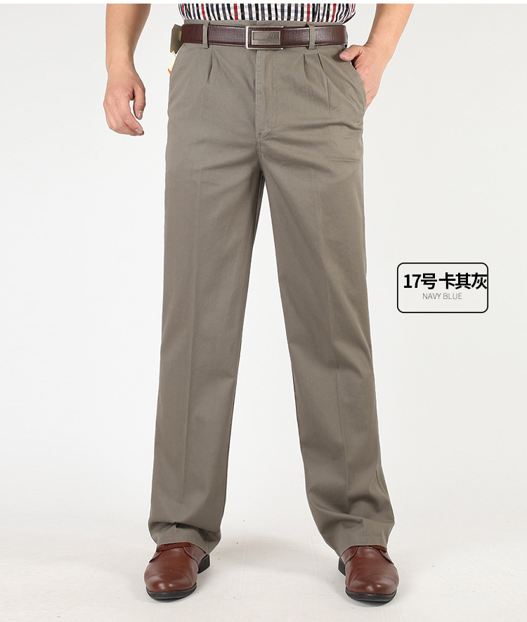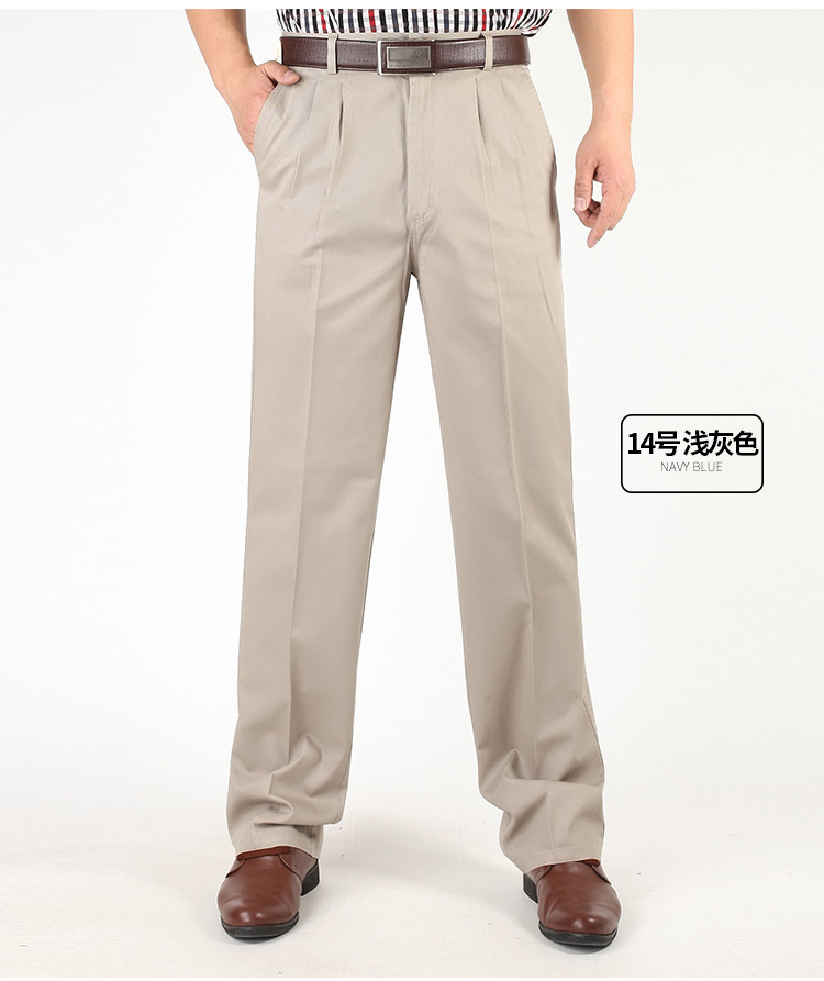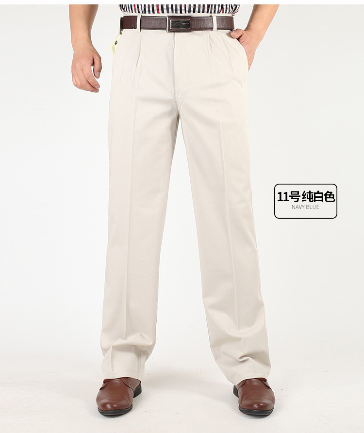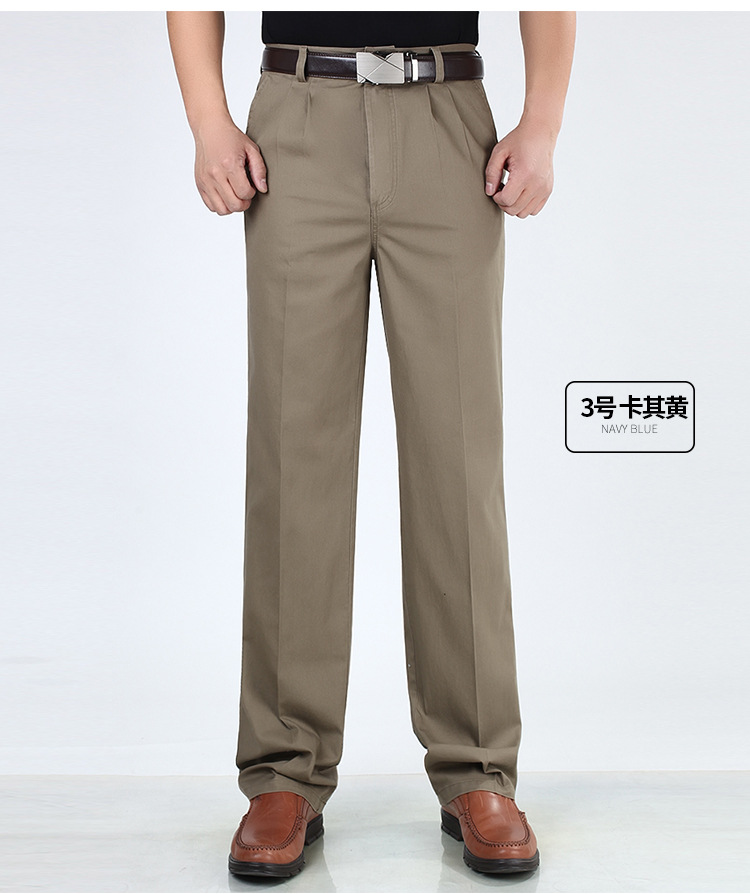 봄과 여름 얇은 중년 및 노인 느슨한 스트레이트 하이 웨이스트 딥 코튼 더블 플리츠 캐주얼 바지 남성 플러스 사이즈 뚱뚱한 남성 바지스토어 가기