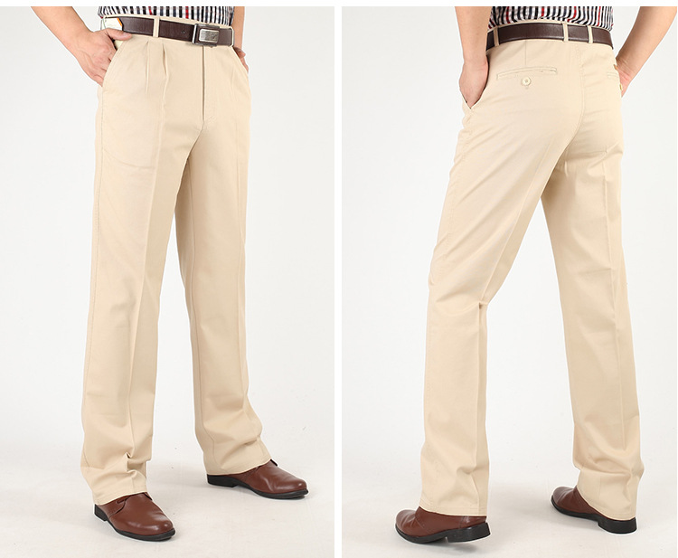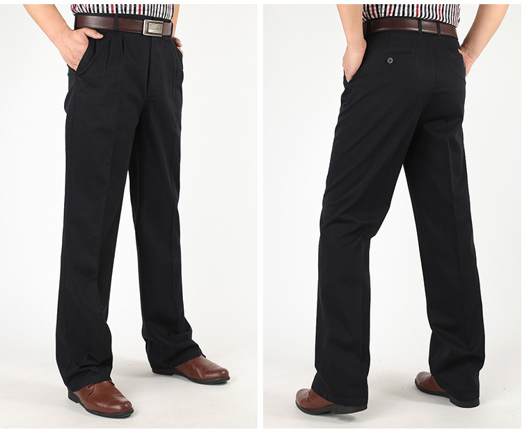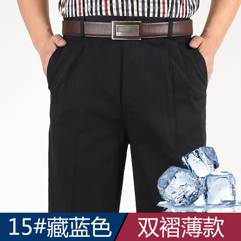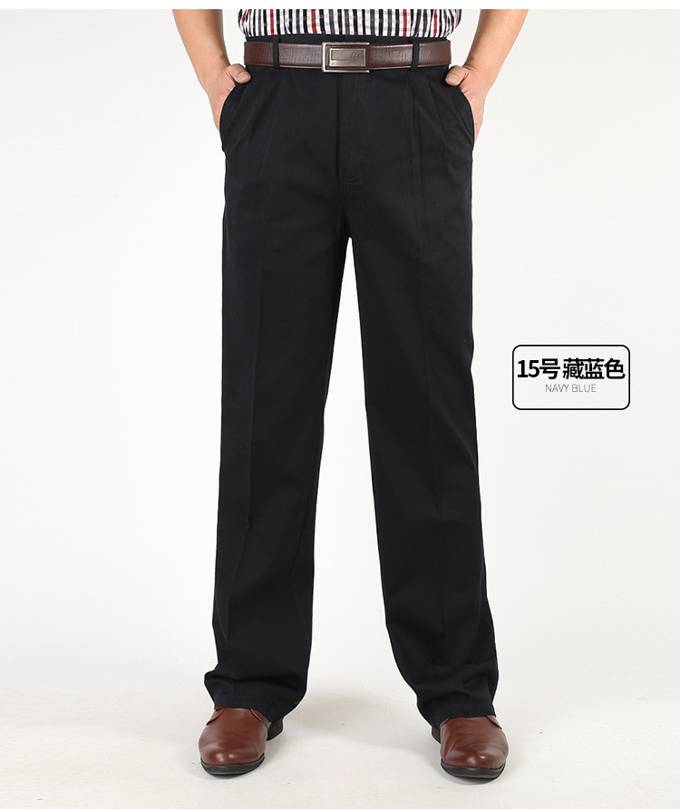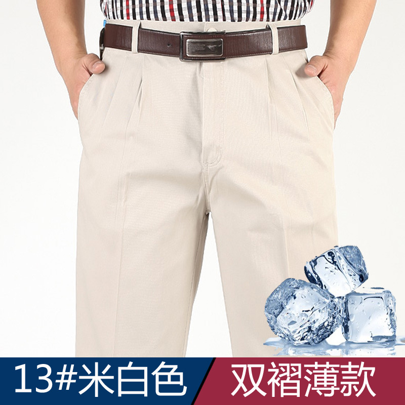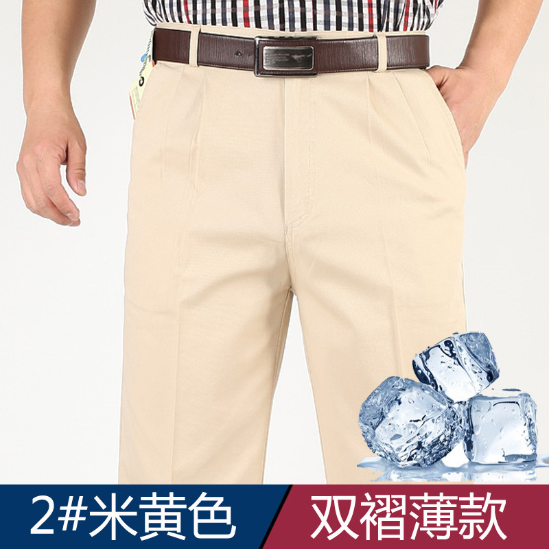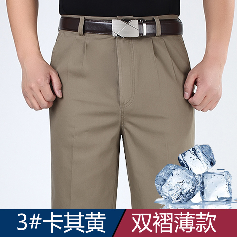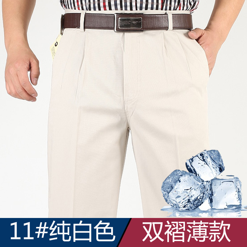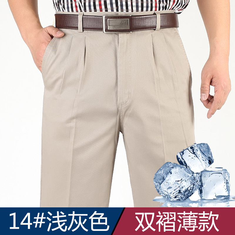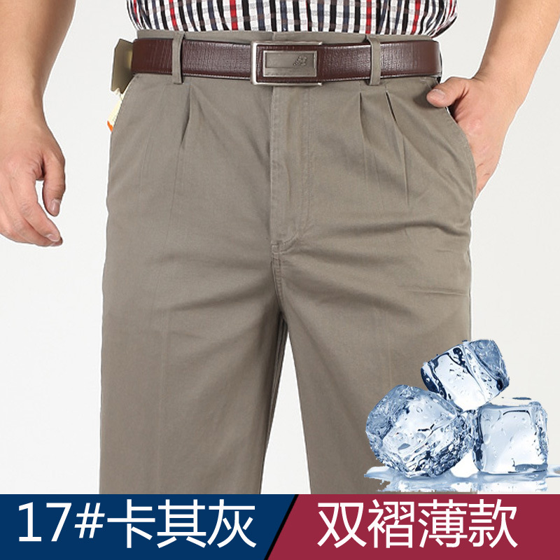 봄과 여름 얇은 중년 및 노인 느슨한 스트레이트 하이 웨이스트 딥 코튼 더블 플리츠 캐주얼 바지 남성 플러스 사이즈 뚱뚱한 남성 바지