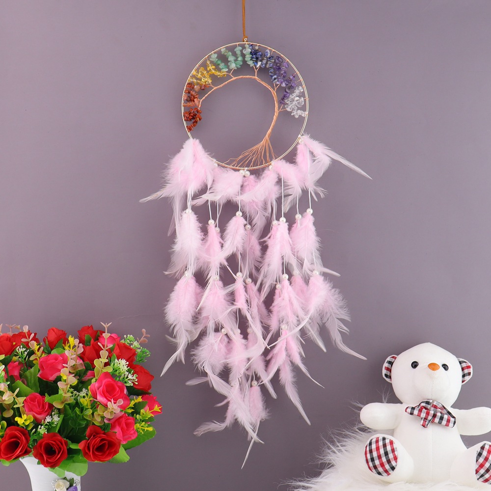 아마존 드림캐쳐 핑크 생명의 나무 자갈 풍경종 펜던트 학생 생일 졸업 선물 D05