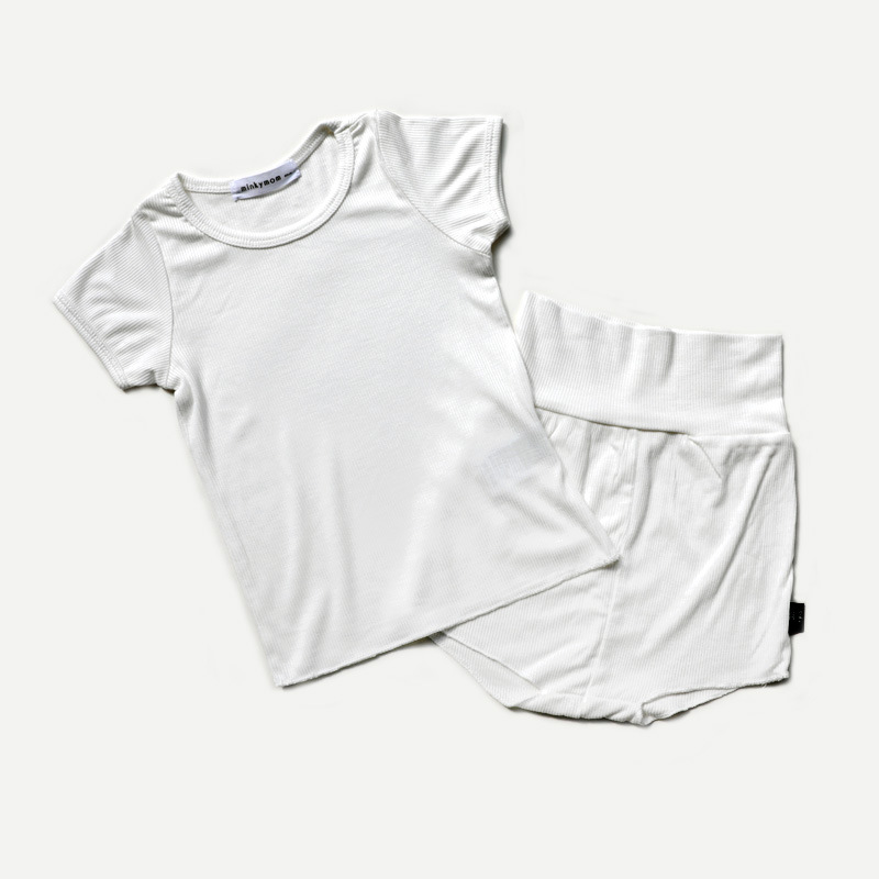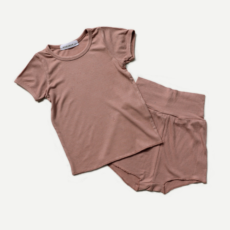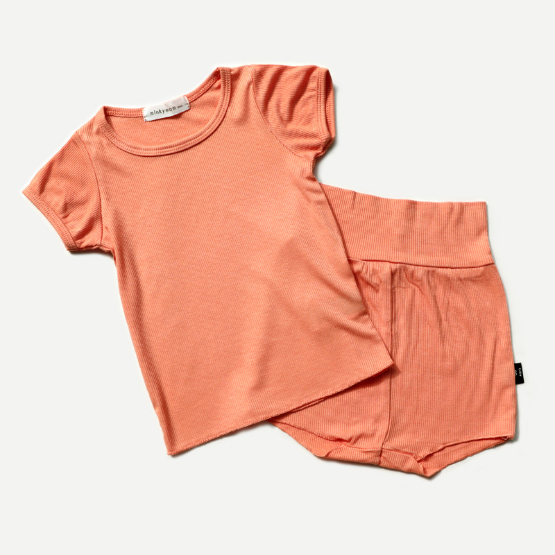 Minkymom의 아동 의류 여름 새로운 부드러운 찹쌀 면 반팔 배 높은 허리 복서 반바지 가정 2 세트