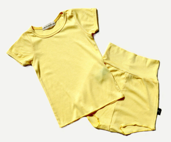 Minkymom의 아동 의류 여름 새로운 부드러운 찹쌀 면 반팔 배 높은 허리 복서 반바지 가정 2 세트스토어 가기