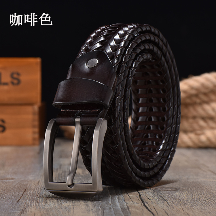 재고 도매 손으로 짠 벨트 남자의 가죽 소가죽 복고풍 캐주얼 핀 버클 중공 벨트 머리카락의 세대