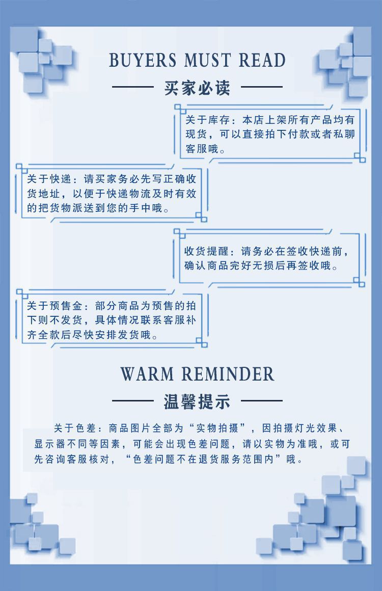 完美主义者勿拍,否则概不退货。拍下付款产品发货后,即同意本条款。