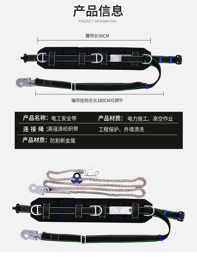 Guangjia로드형 전기 안전 벨트 공중 작업 안전 벨트 안전 로프 두꺼운 전기 등반로드 인클로저 로드스토어 가기