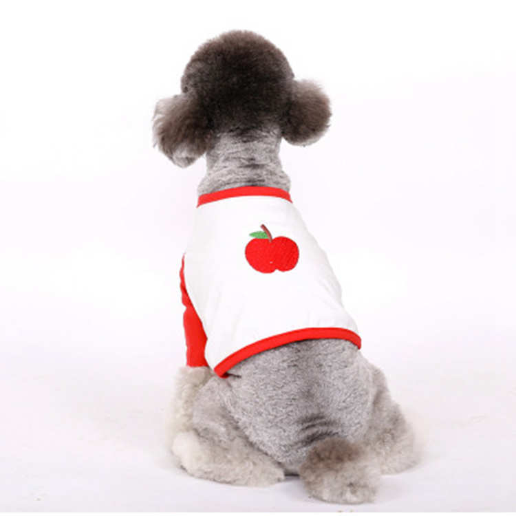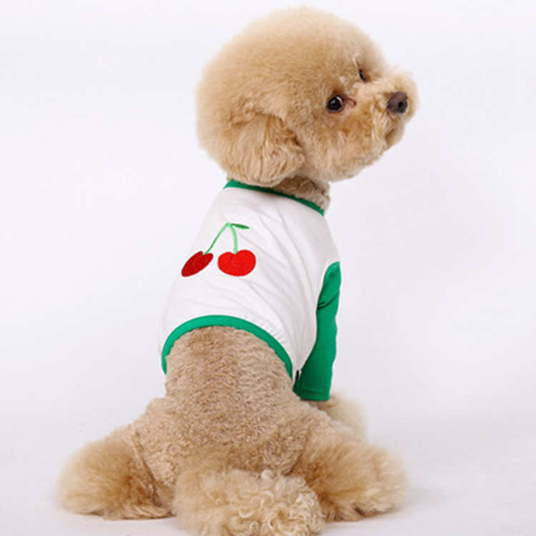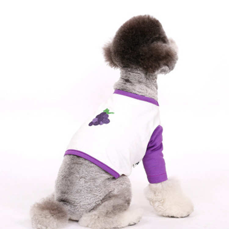 애완 동물 고양이 개 봄과 가을 두 다리 옷 신선한 사과 포도 과일 시리즈 절묘한 자수 컬러 매칭 긴 소매 티셔츠