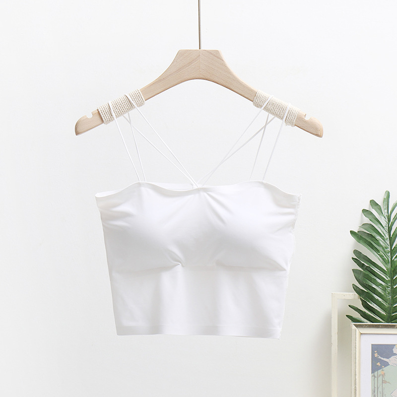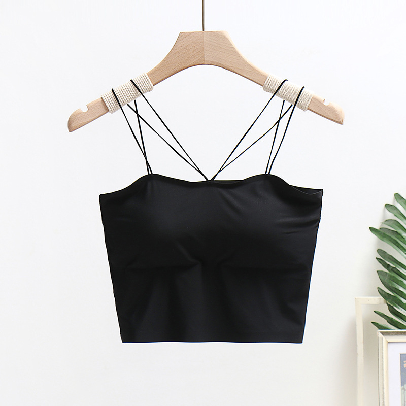 새로운 아이스 실크 얇은 어깨 스트랩 크로스 아름다운 다시 포장 가슴 한국 스포츠베이스 벨트 가슴 패드 조끼 여성용 슬링 속옷 여름