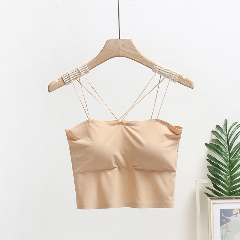 抖音网红直播爆款光板冰丝无痕吊带内衣免穿文胸带胸垫固定杯背心