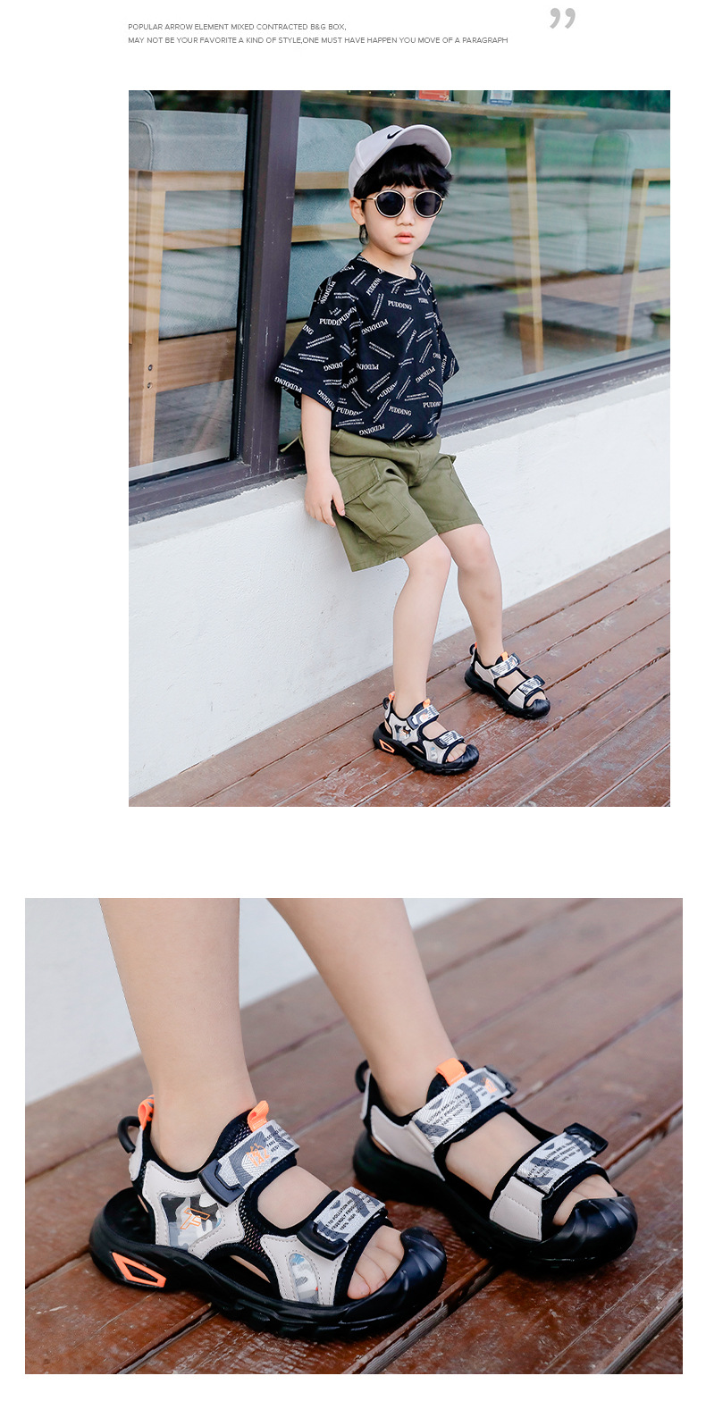 소년 샌들 2025 새로운 여름 어린이 벨크로 어린이 발가락 신발 부드러운 바닥 소년 해변 신발 도매스토어 가기