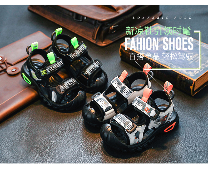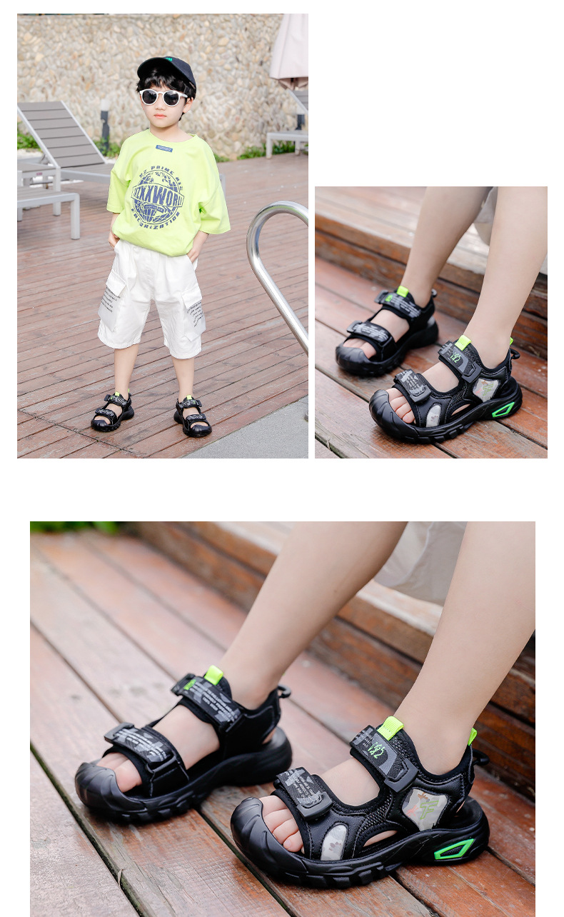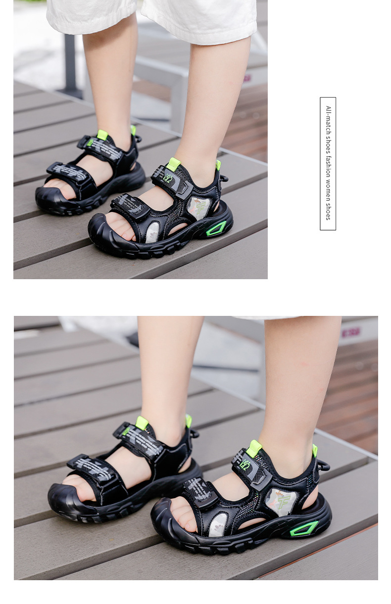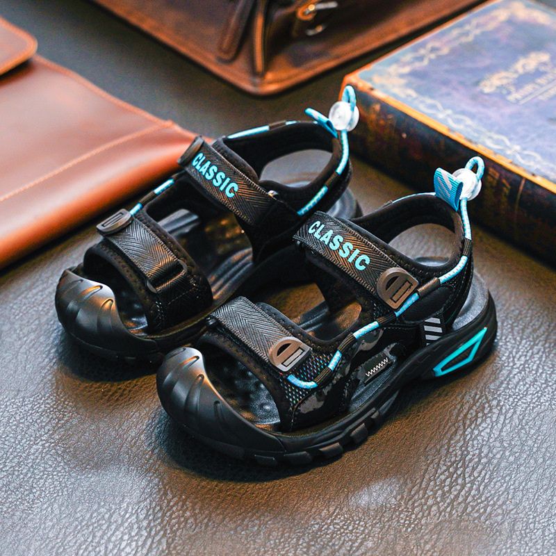 소년 샌들 2025 새로운 여름 어린이 벨크로 어린이 발가락 신발 부드러운 바닥 소년 해변 신발 도매