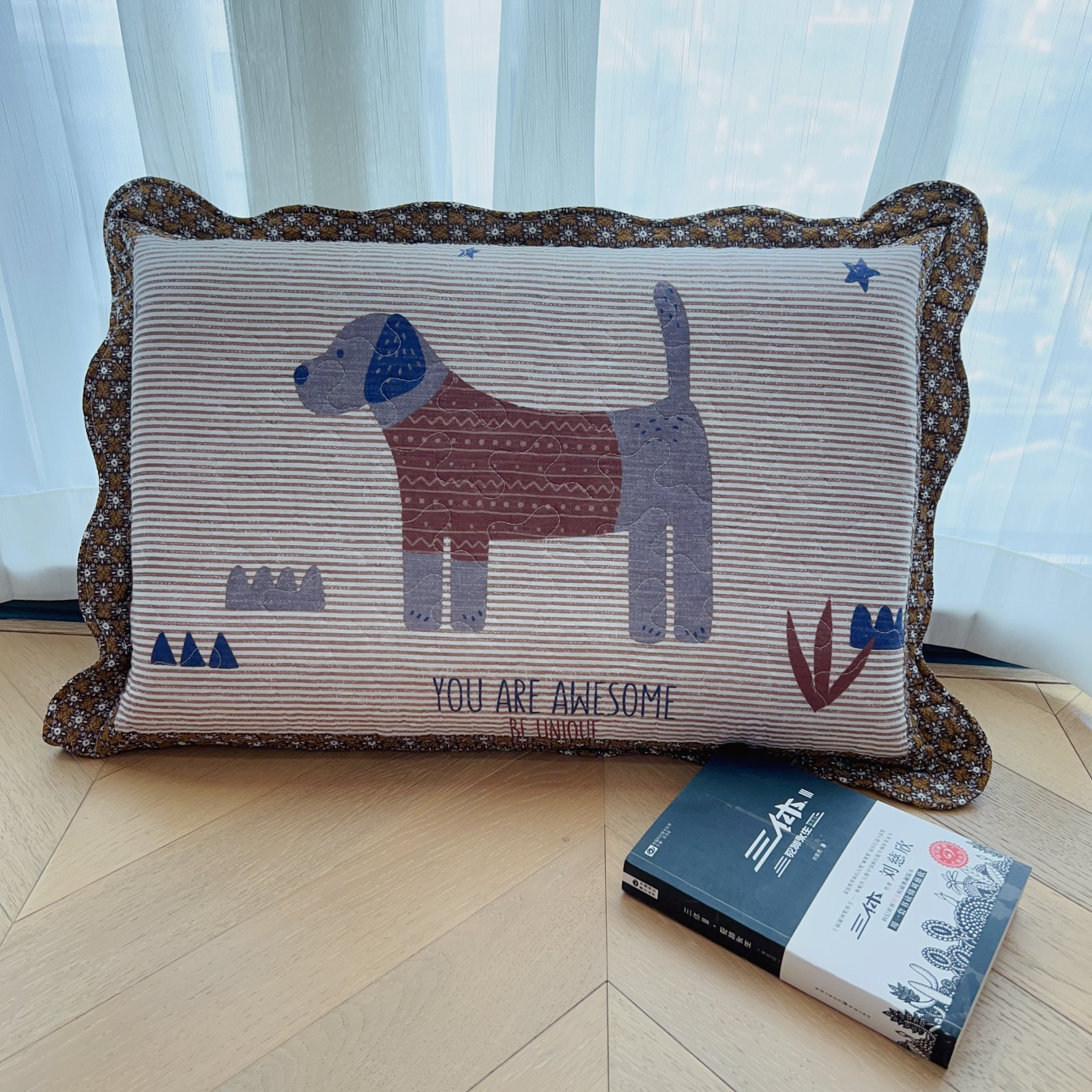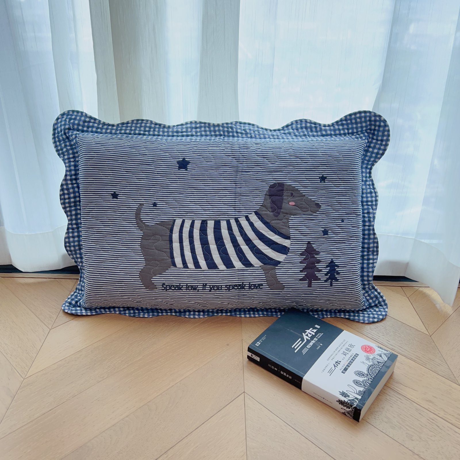 这款枕套的尺寸是40*60+5cm,是全棉夹棉绗缝的枕套,背面有拉链设计。我们是源头工厂,质量好,价格优!想要大一点50*70cm的枕套也有,详情联系客服!