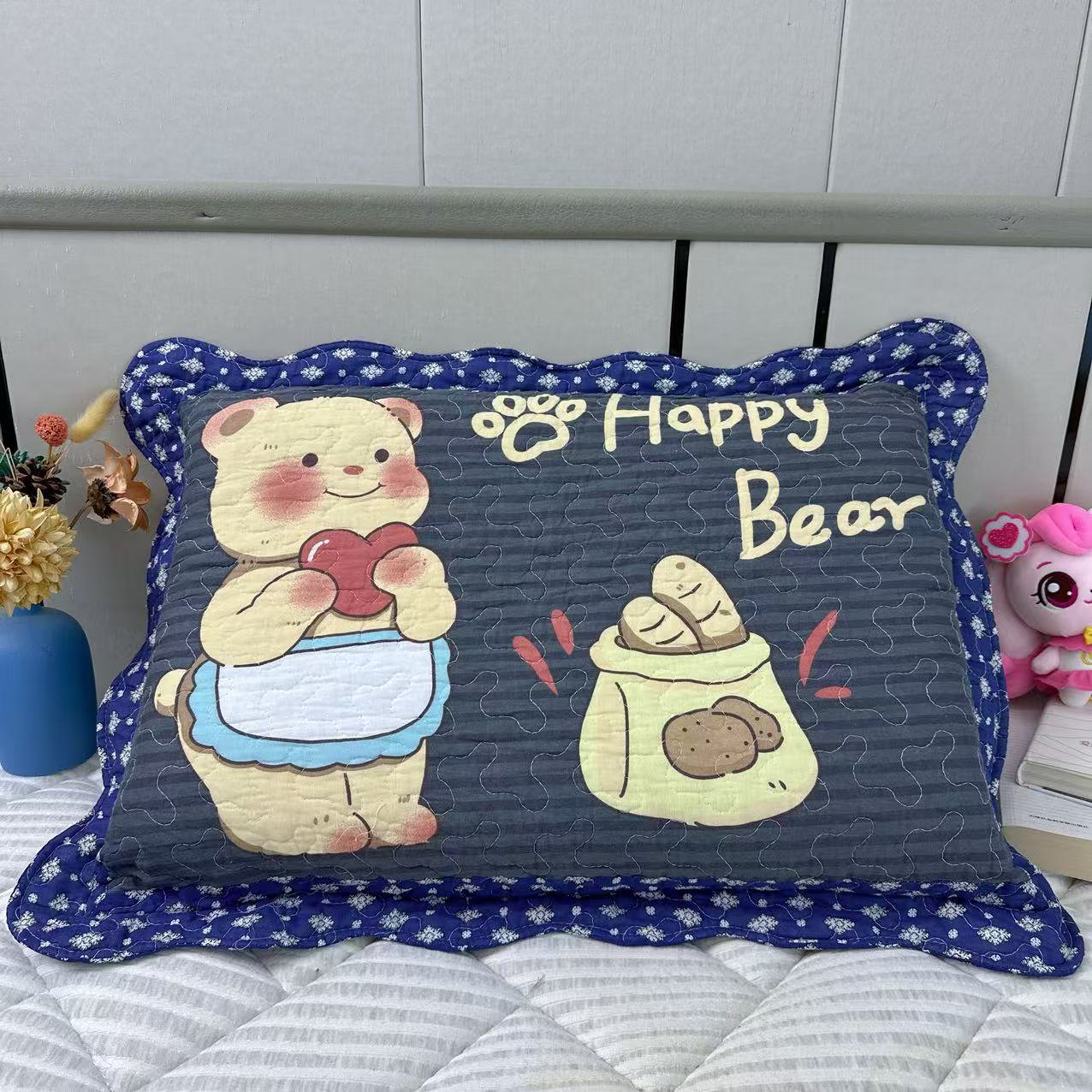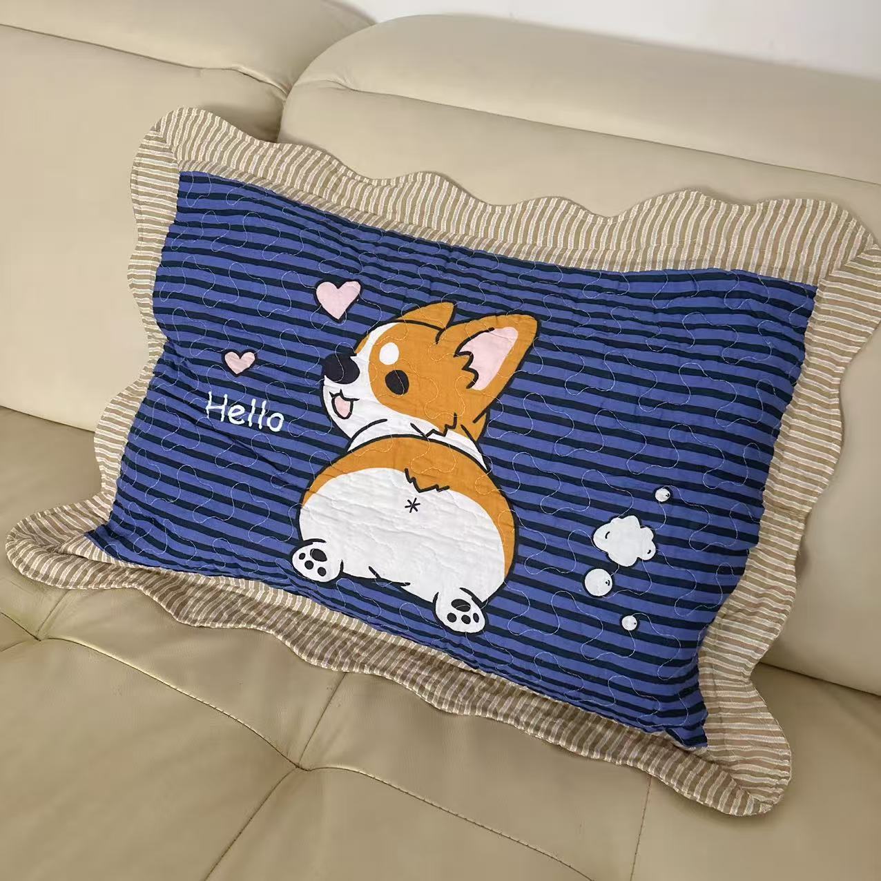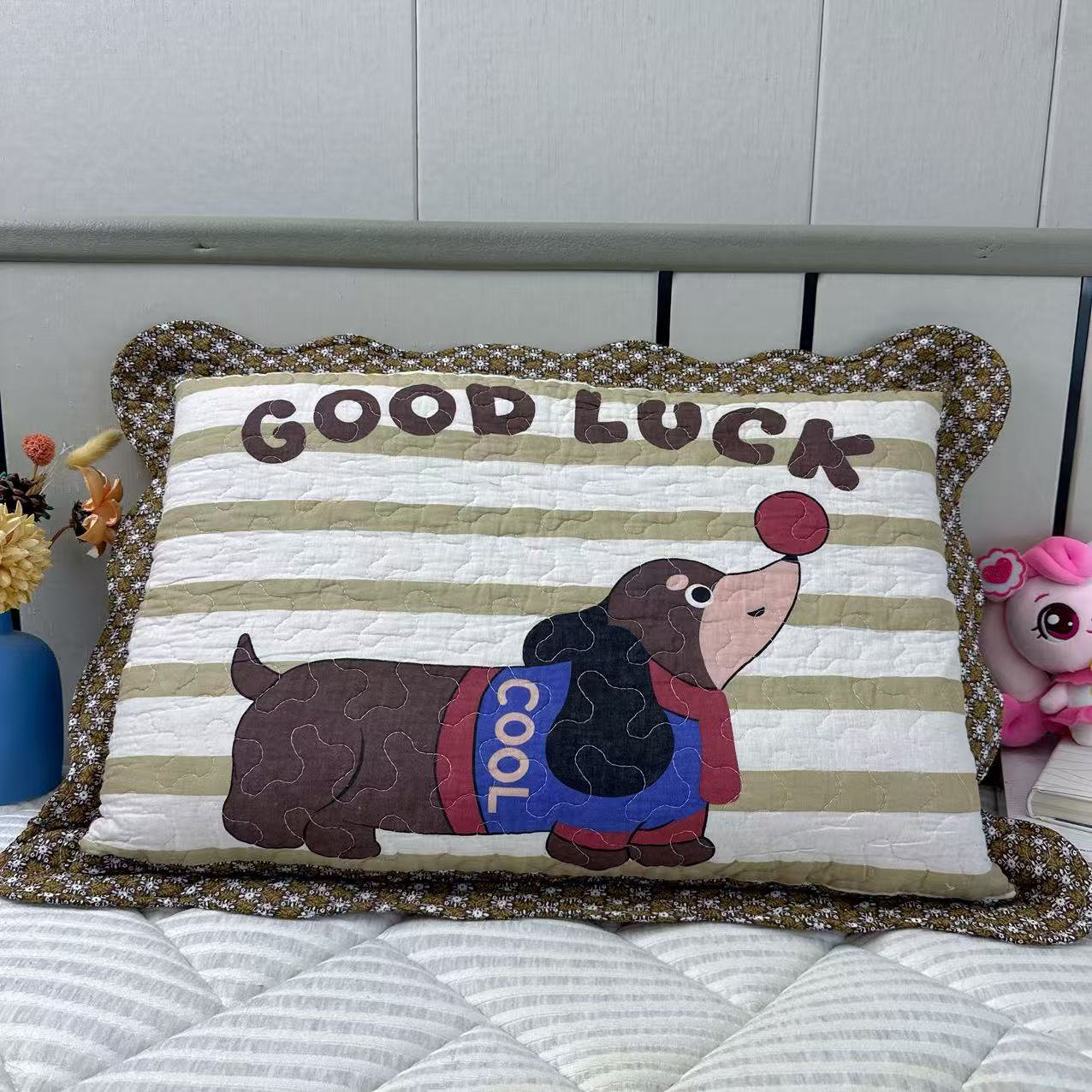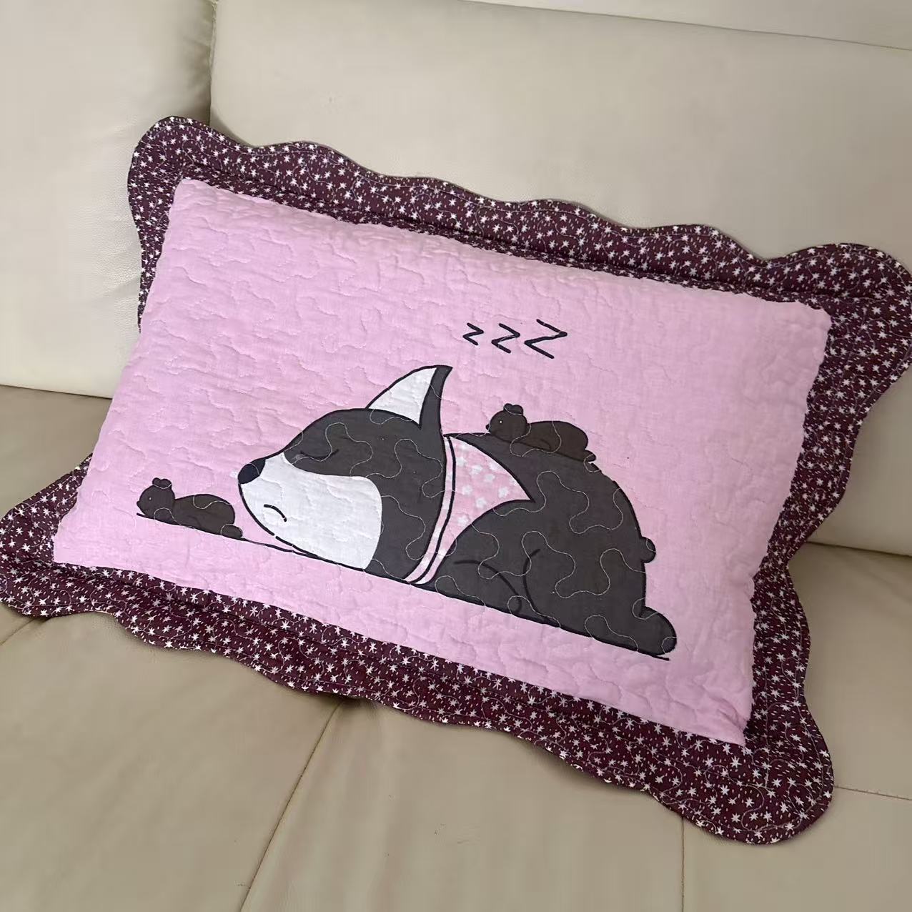순면 베갯잇 성인 및 어린이용 퀼트 누빔 패치워크 베갯잇 지퍼 포함, 세탁기 사용 가능, 순면, 한국식 귀여운 스타일