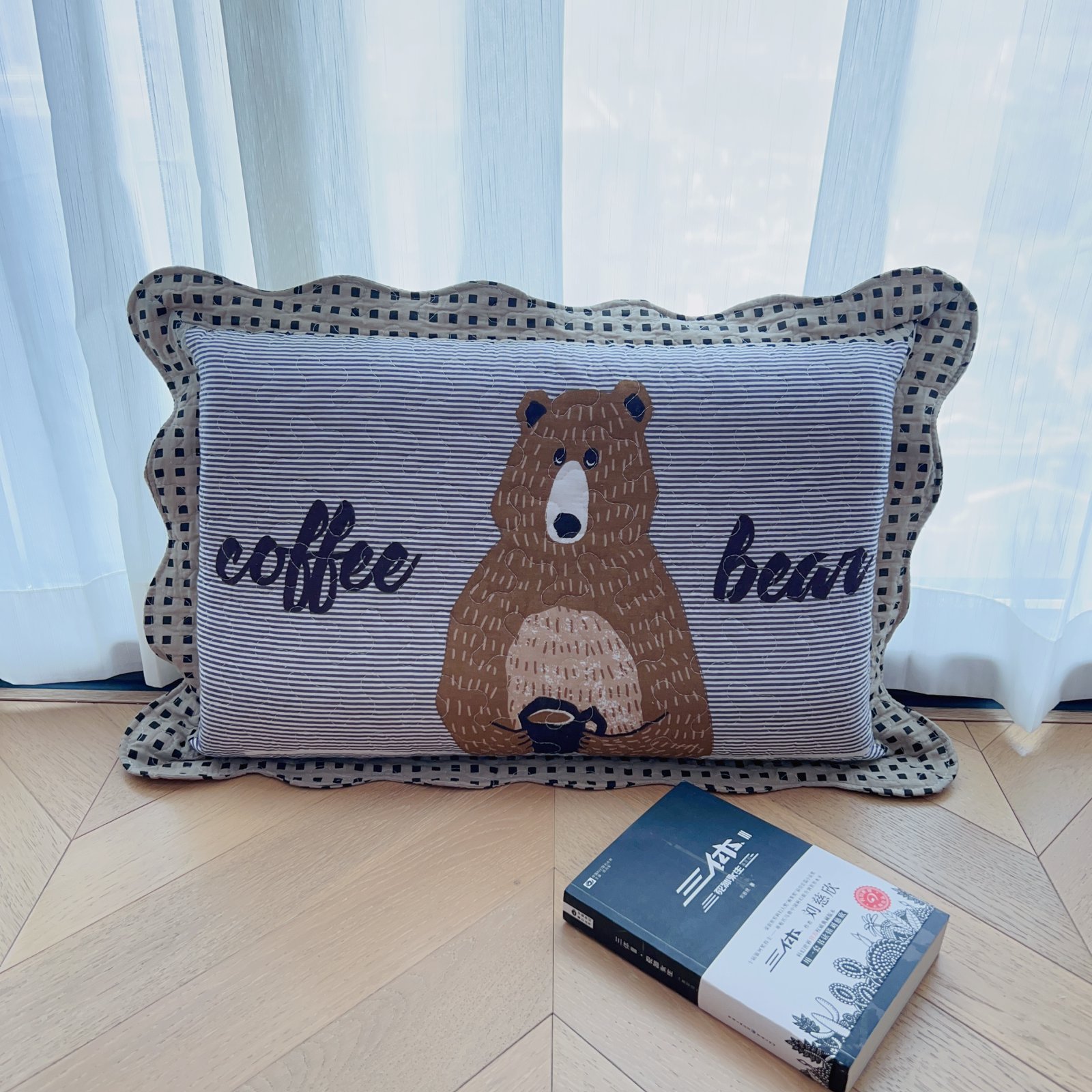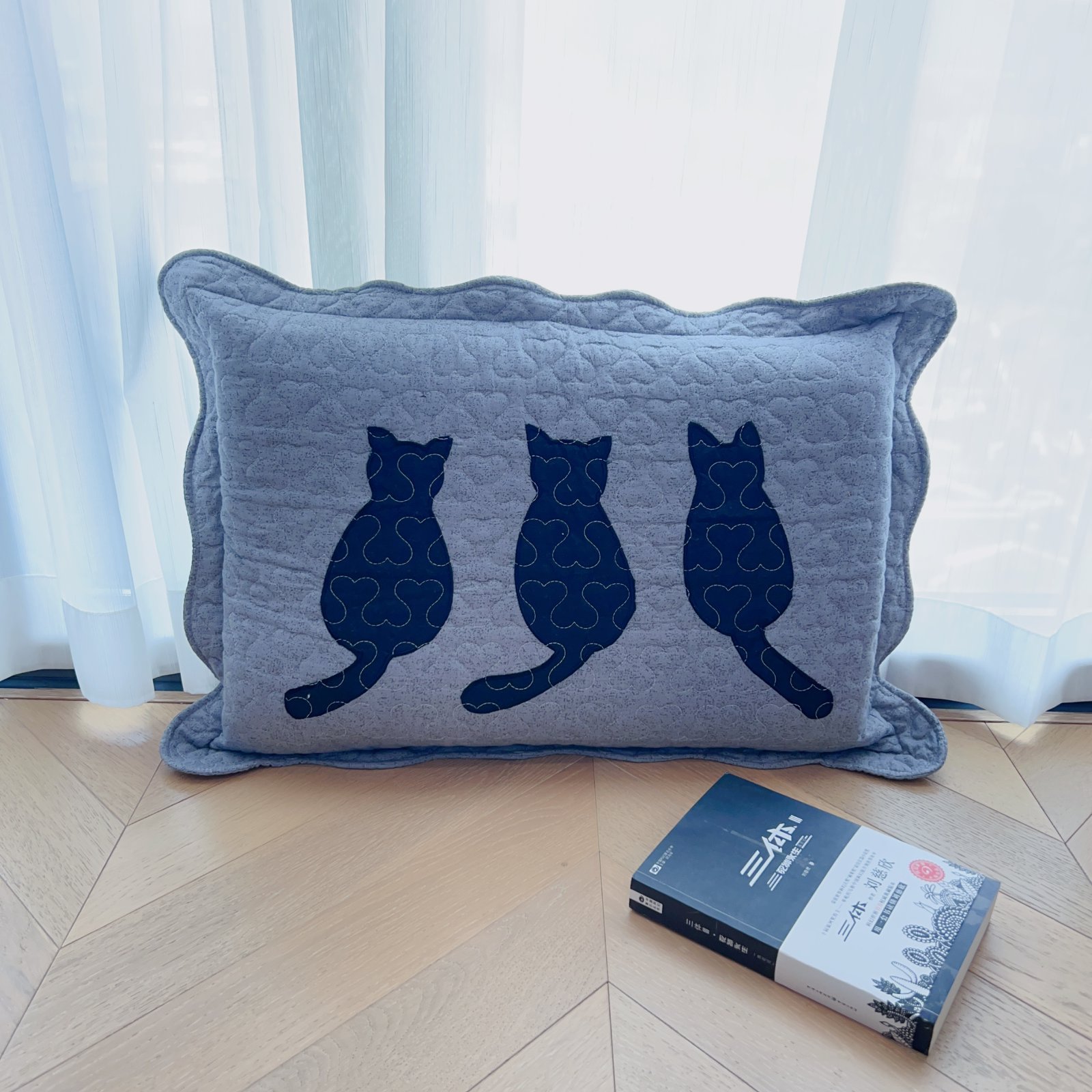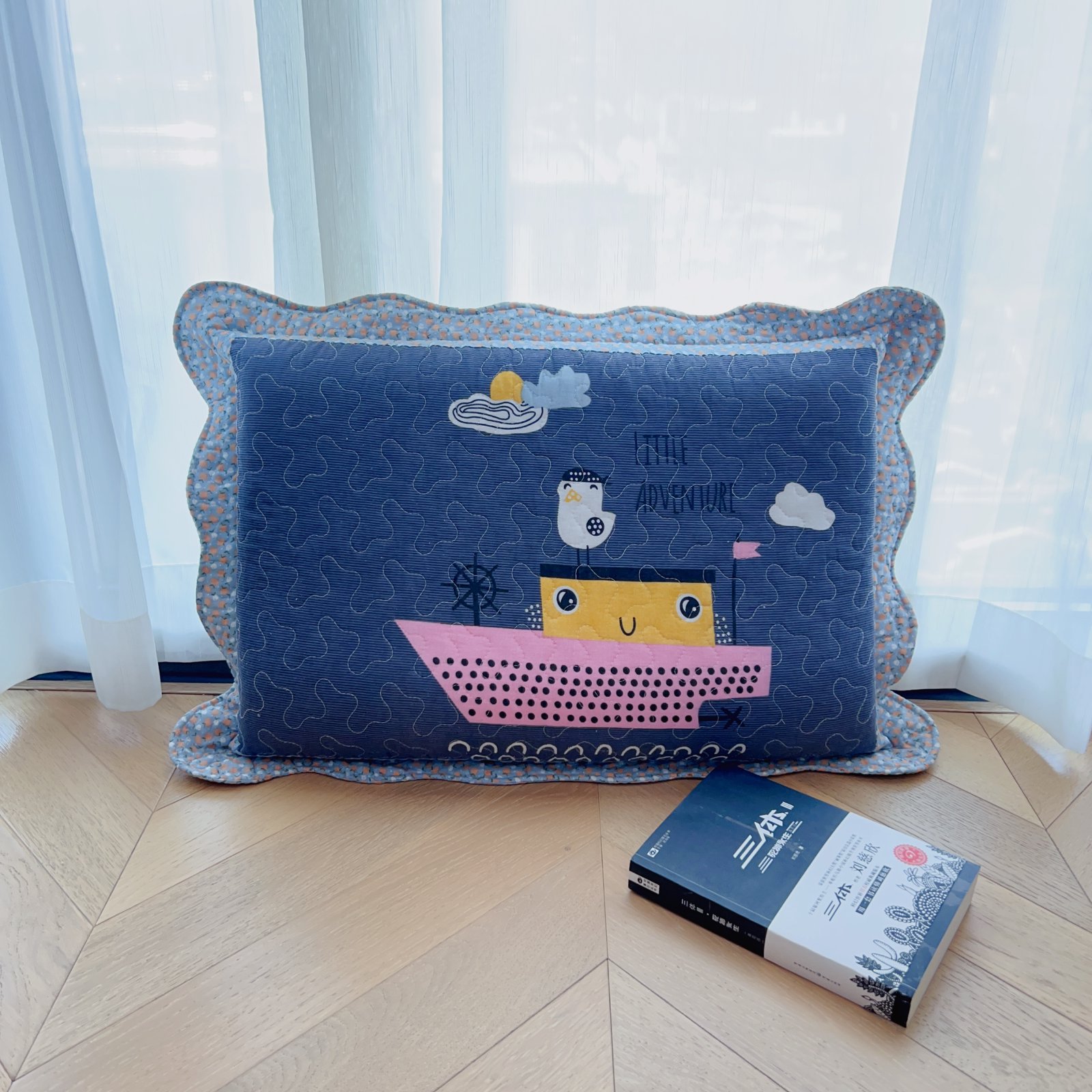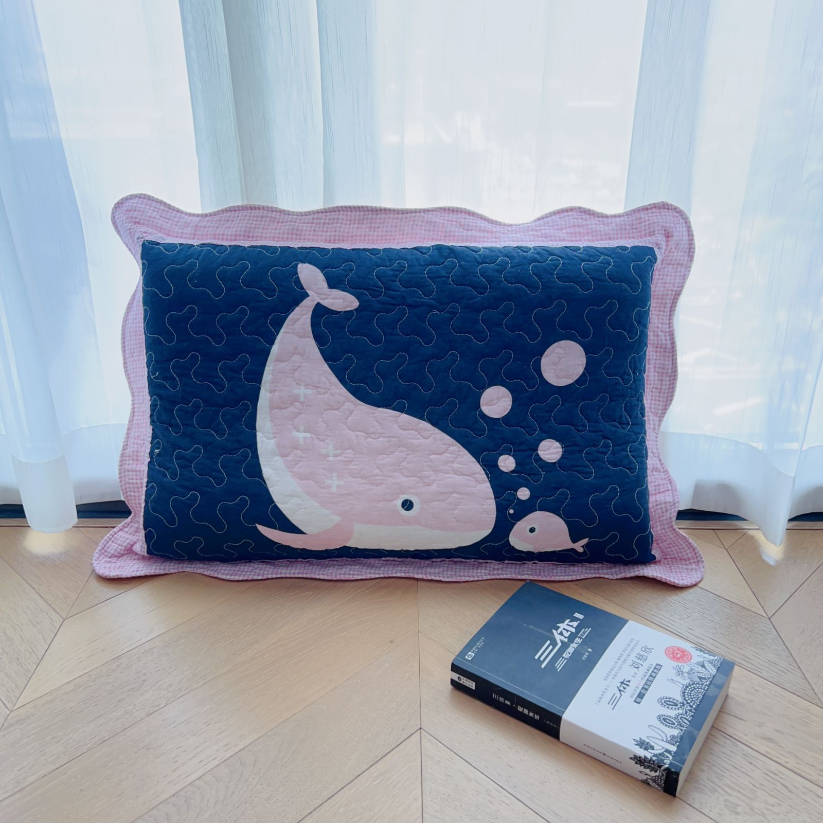 순면 베갯잇 성인 및 어린이용 퀼트 누빔 패치워크 베갯잇 지퍼 포함, 세탁기 사용 가능, 순면, 한국식 귀여운 스타일
