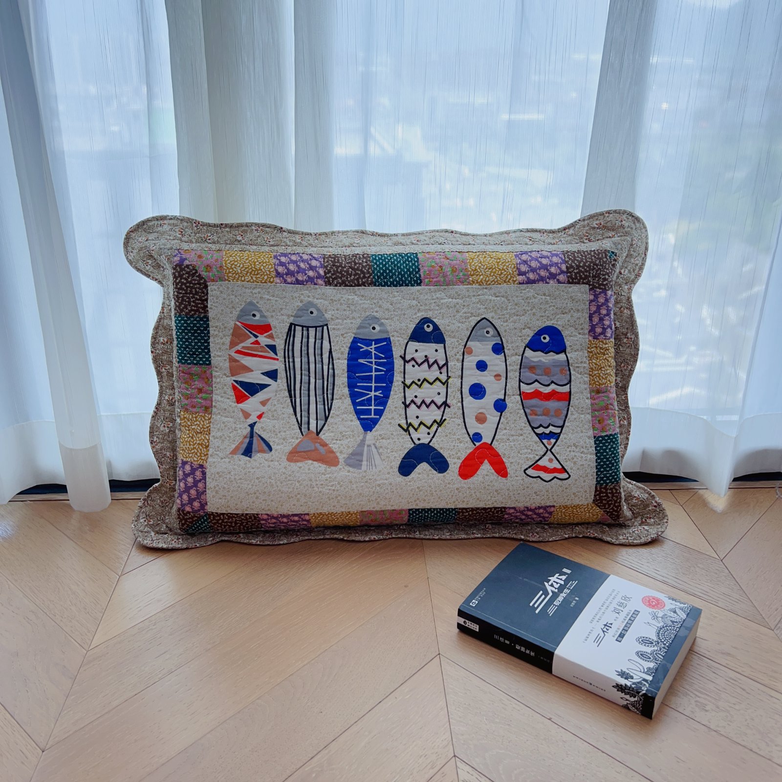 순면 베갯잇 성인 및 어린이용 퀼트 누빔 패치워크 베갯잇 지퍼 포함, 세탁기 사용 가능, 순면, 한국식 귀여운 스타일스토어 가기