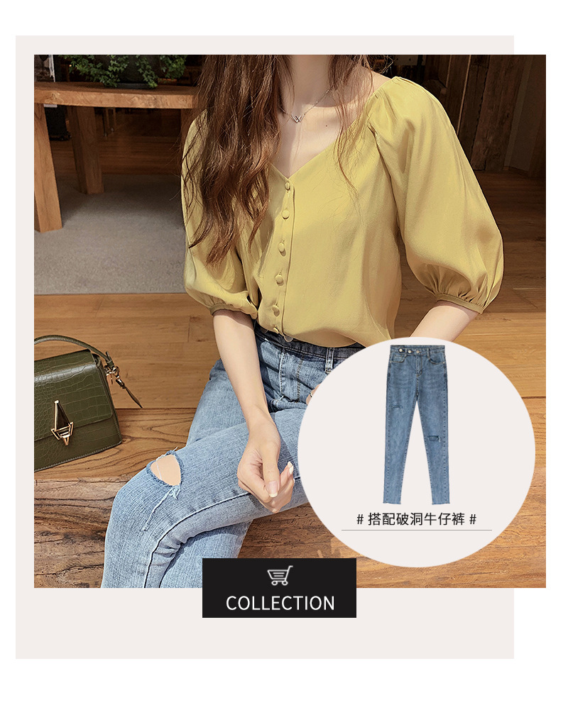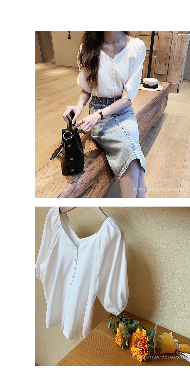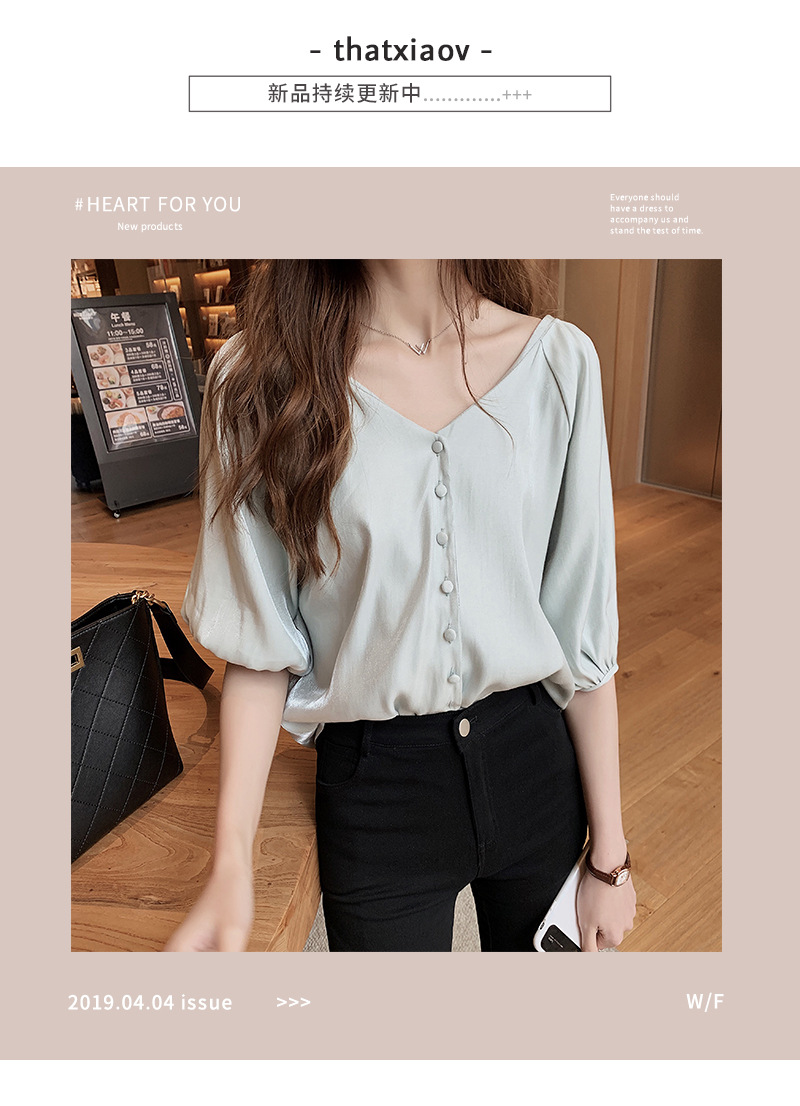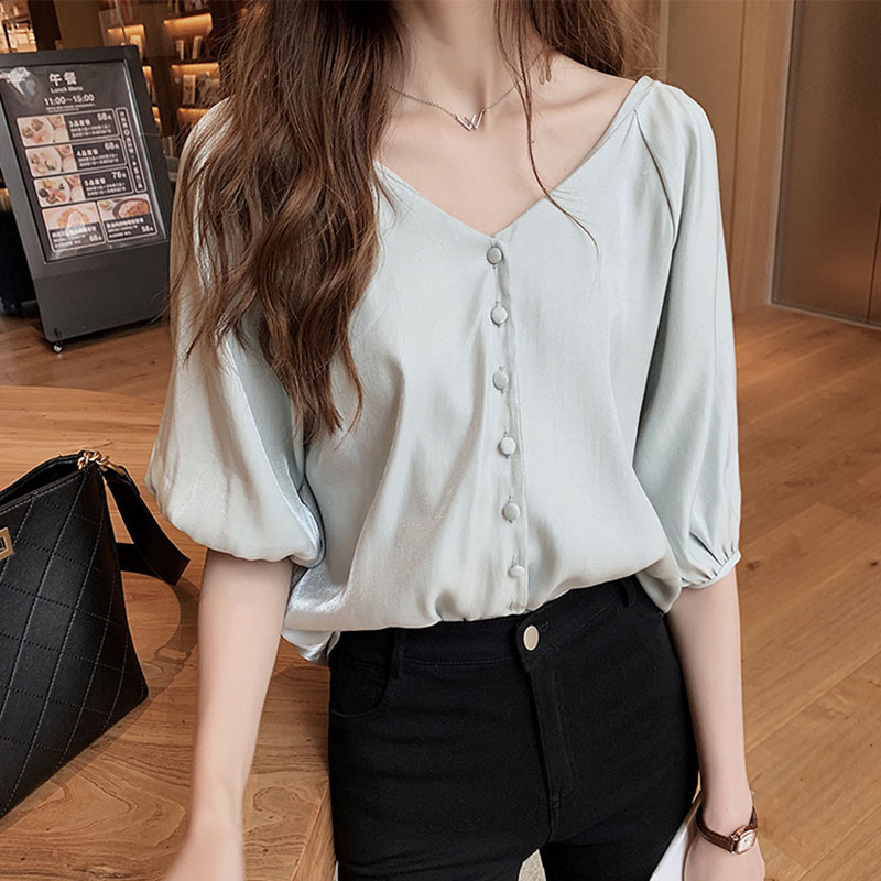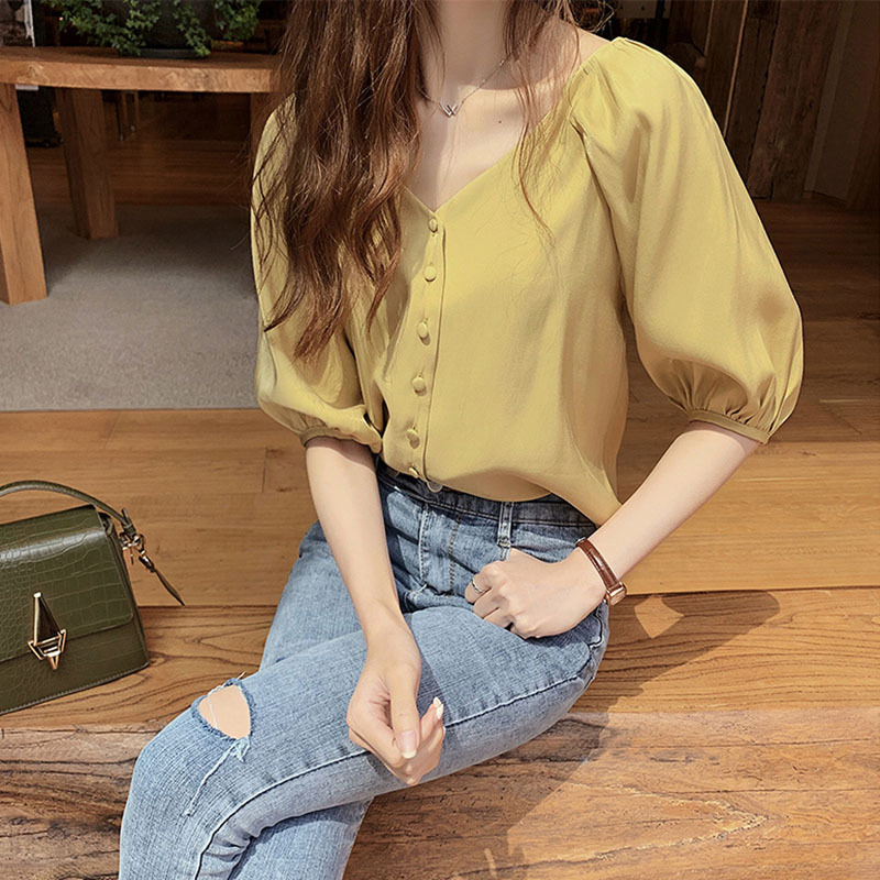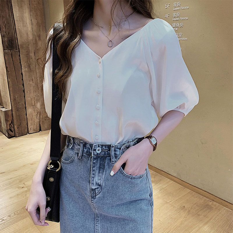 2025 봄 여름 새로운 한국 스타일 패션 느슨한 쉬폰 셔츠 여성 반팔 탑 서양식 셔츠 솔리드 컬러 바닥 셔츠스토어 가기