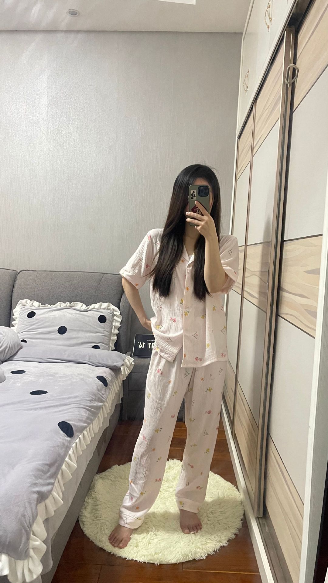 여성용 얇은 잠옷, 여름 신상품, 클라우드 코튼 반팔 긴바지 투피스 세트, 학생용 홈웨어, 외부에서 착용 가능스토어 가기