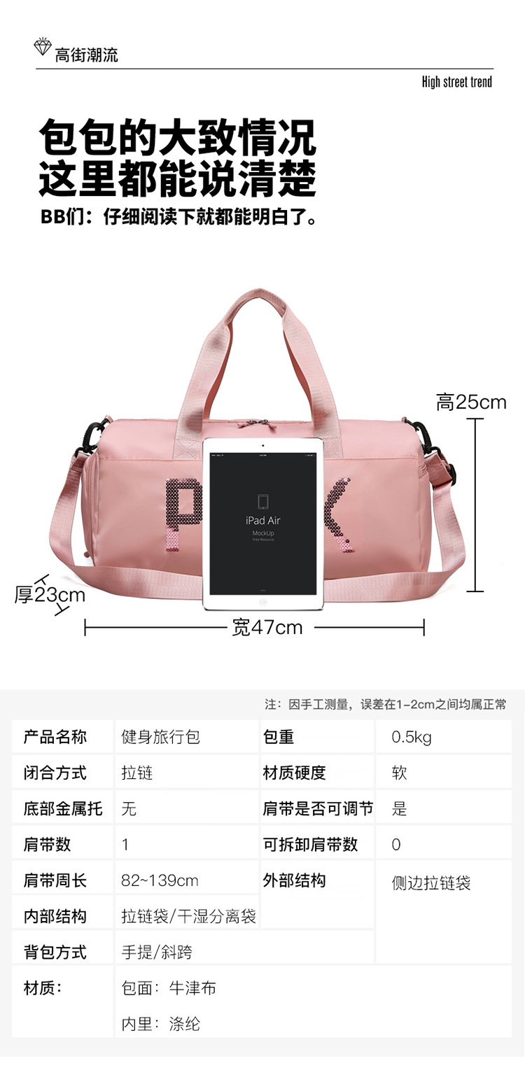 2025 새로운 수영 스포츠 피트니스 가방 여성 유럽과 미국의 야외 수하물 가방 휴대용 요가 가방 대용량 여행 가방스토어 가기