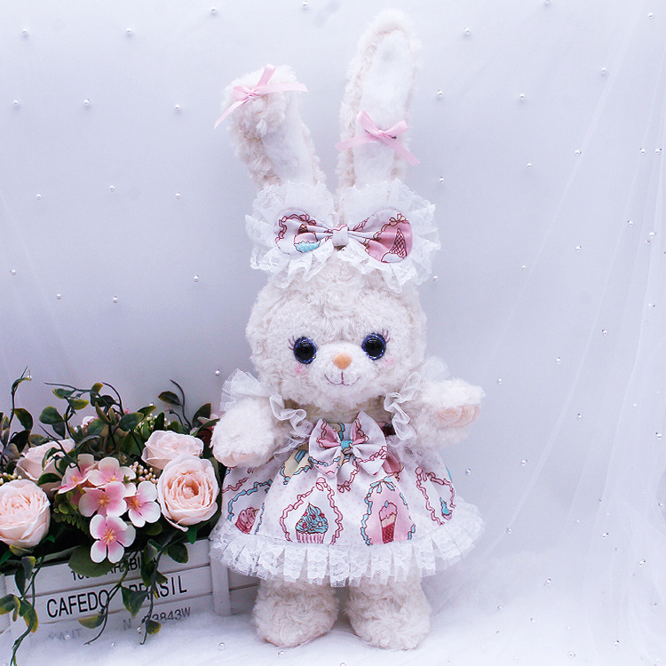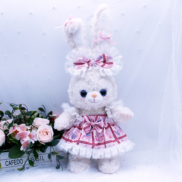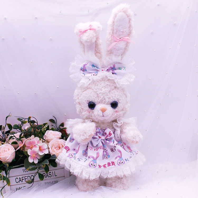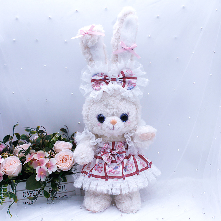 本品立耳朵露露是50cm,趴耳朵露露 欣欣和饼饼是33cm,贝尔是38cm,露露耳朵后面没有绣花,白露露趴耳朵款耳朵是向后面。贝尔和灰露露都带有吊牌,眼睛(小眼睛和水晶眼睛)随机出,其他款需要吊牌和客服备注,骨架定制眼睛花色随机出
