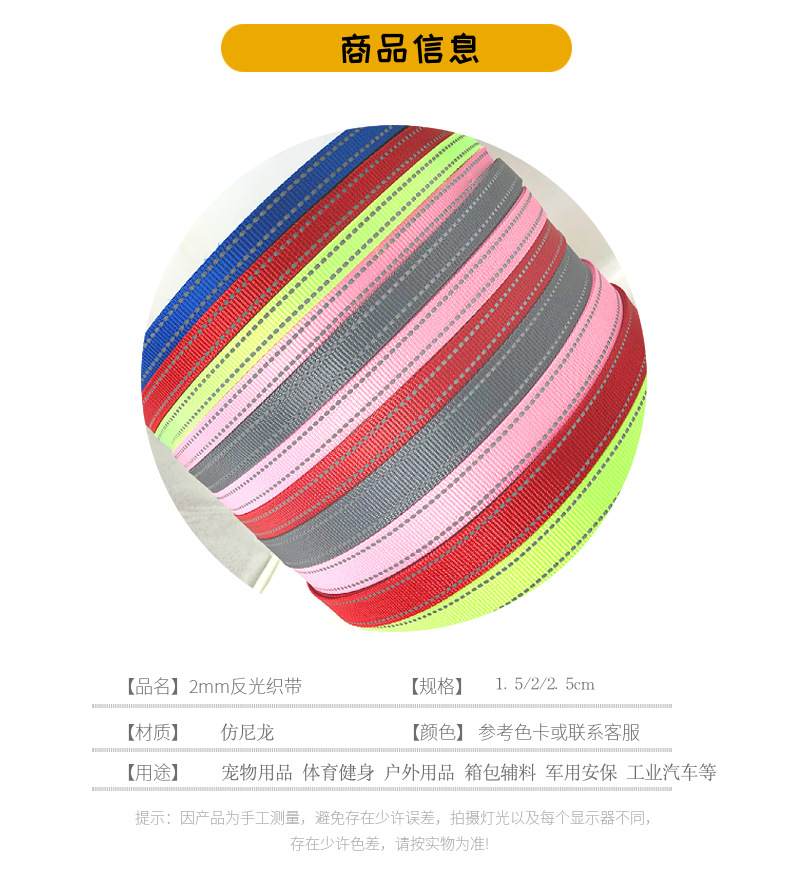 모조 나일론 반사 웨빙 제조 업체 색상 나일론 웨빙 피트니스 가방 애완 동물 반사 웨빙과