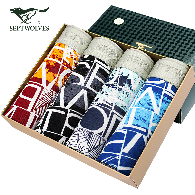 일곱 늑대 속옷 남자의 상자 청소년 부드러운 얼음 실크 얇은 통기성 패션 인쇄 상자스토어 가기
