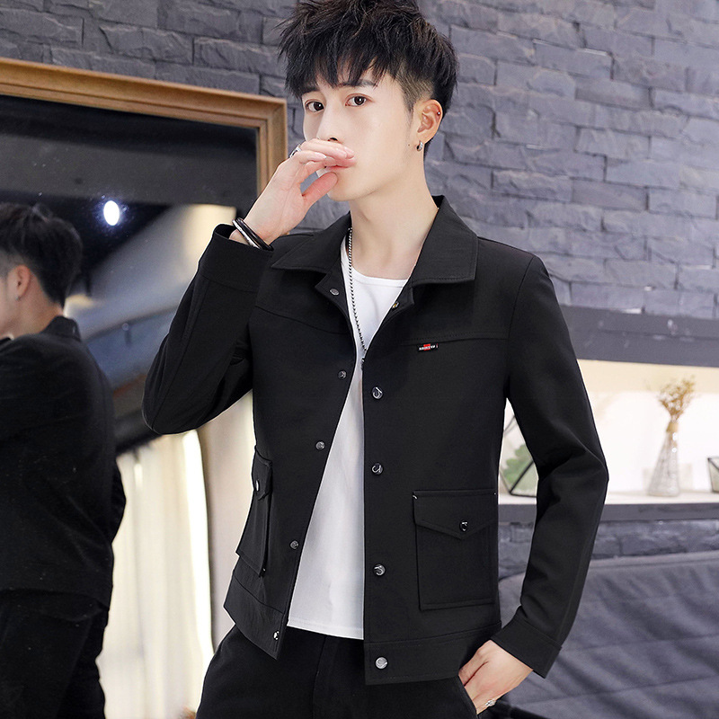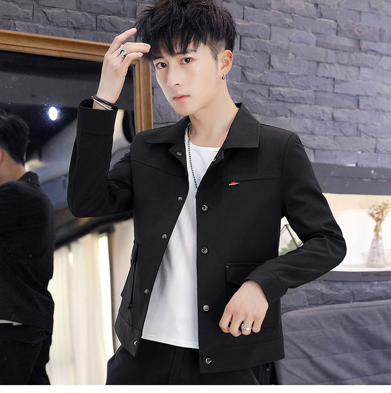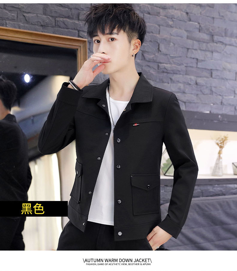 2021 봄과 가을 새로운 남성 한국 스타일 슬림핏 재킷 랩 잘 생긴 짧은 작업복 탑 캐주얼 재킷