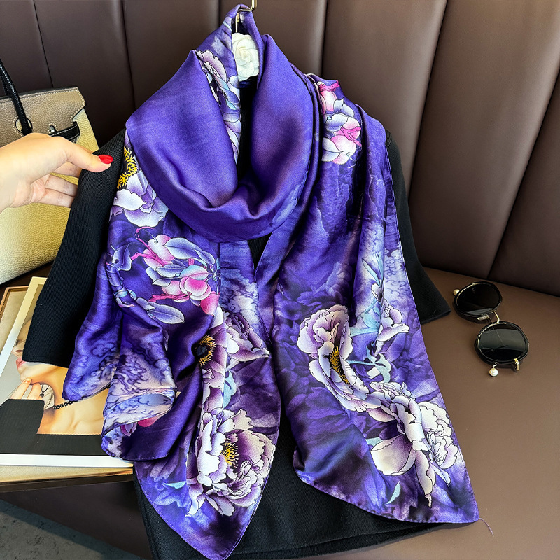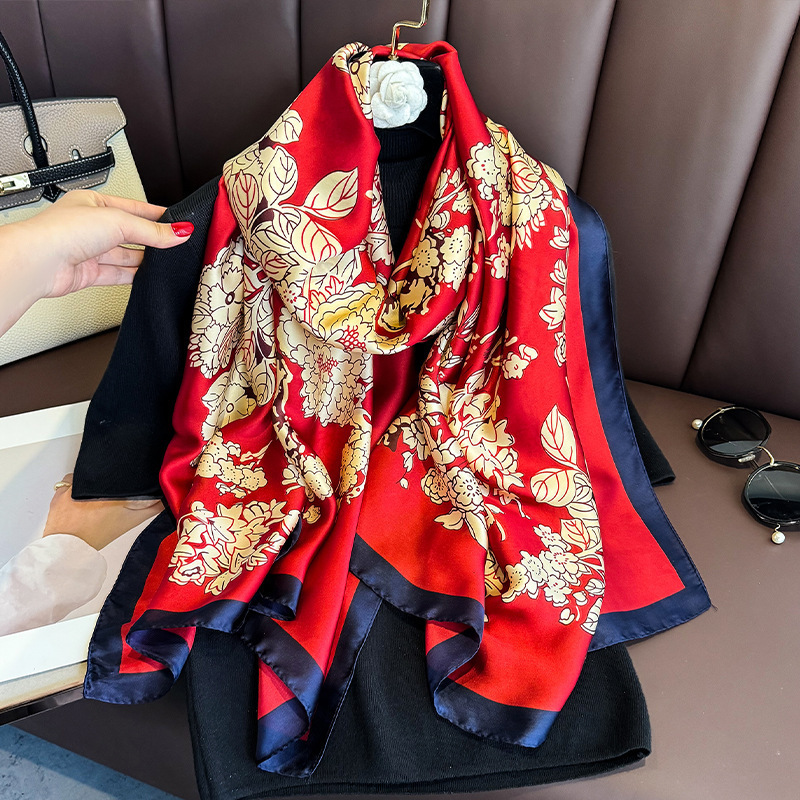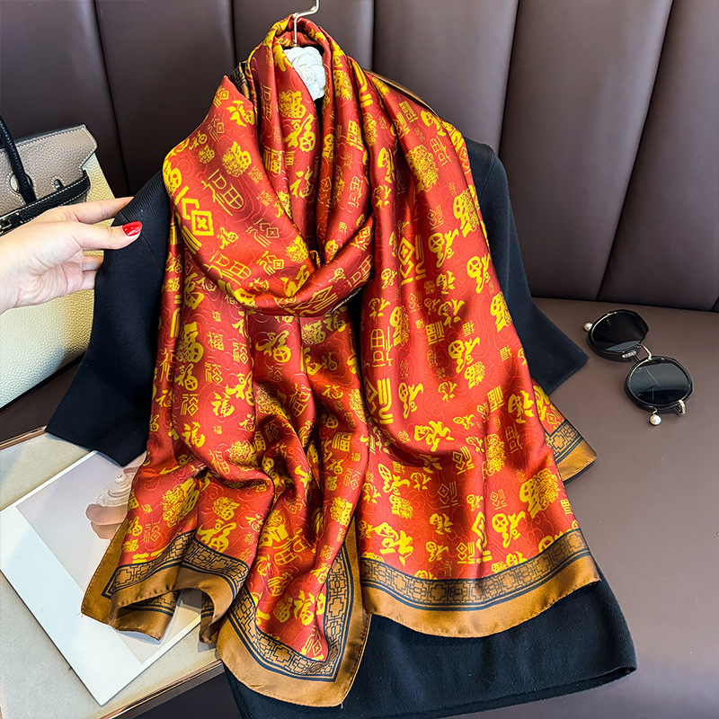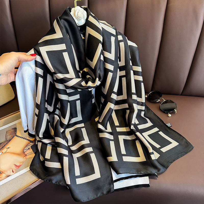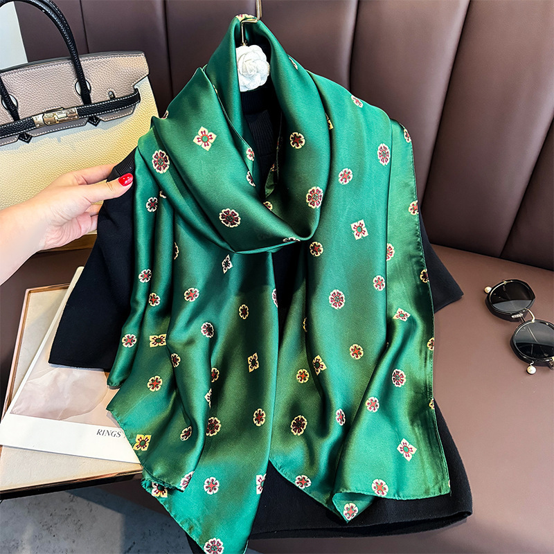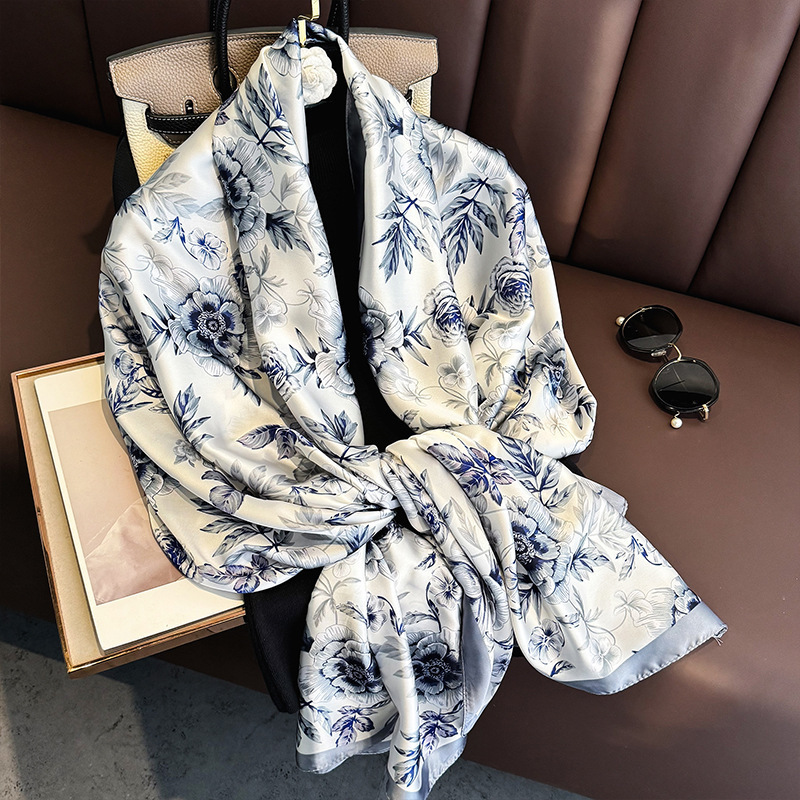 새로운 봄 여름 한국 스타일 실크 스카프, 자외선 차단, 긴 프린트 인조 실크 스카프, 여성용 롱 스카프, 비치 타월 도매스토어 가기