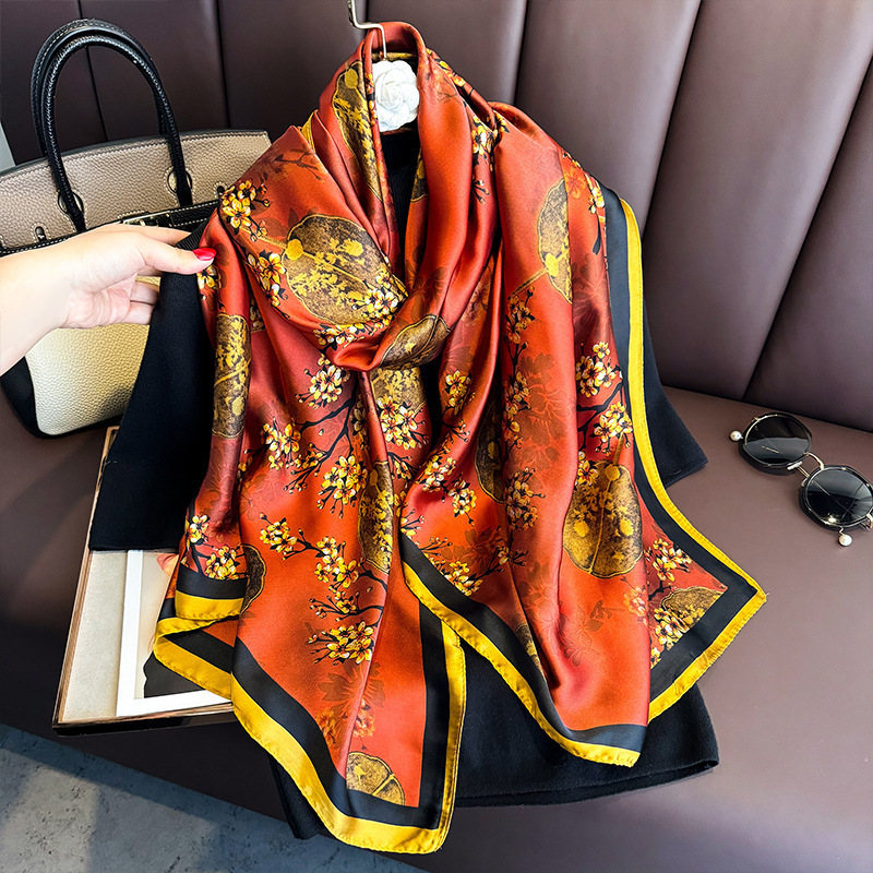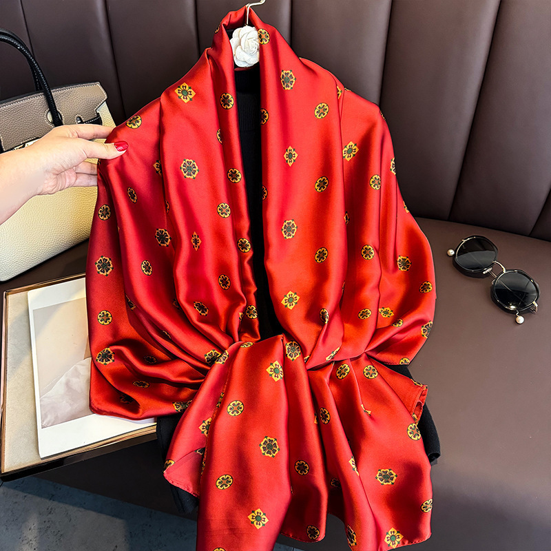 새로운 봄 여름 한국 스타일 실크 스카프, 자외선 차단, 긴 프린트 인조 실크 스카프, 여성용 롱 스카프, 비치 타월 도매