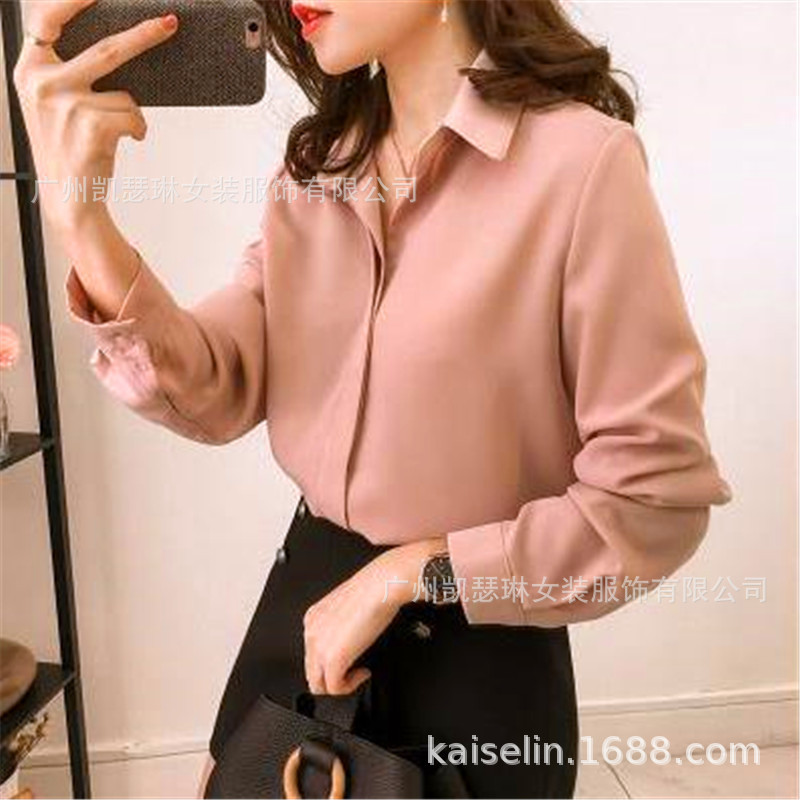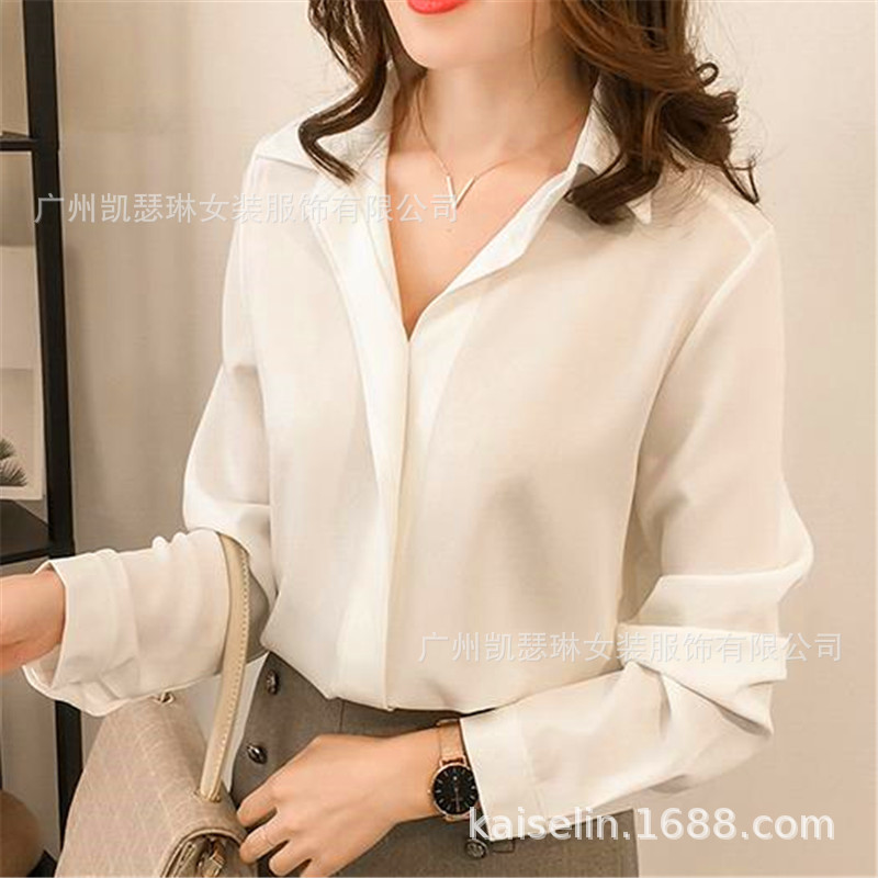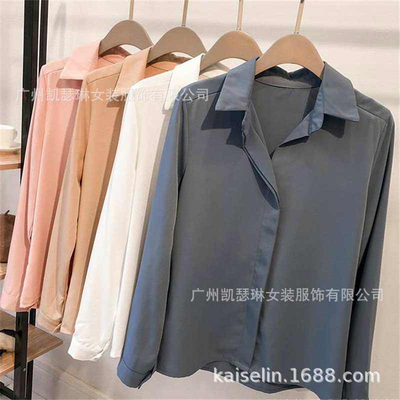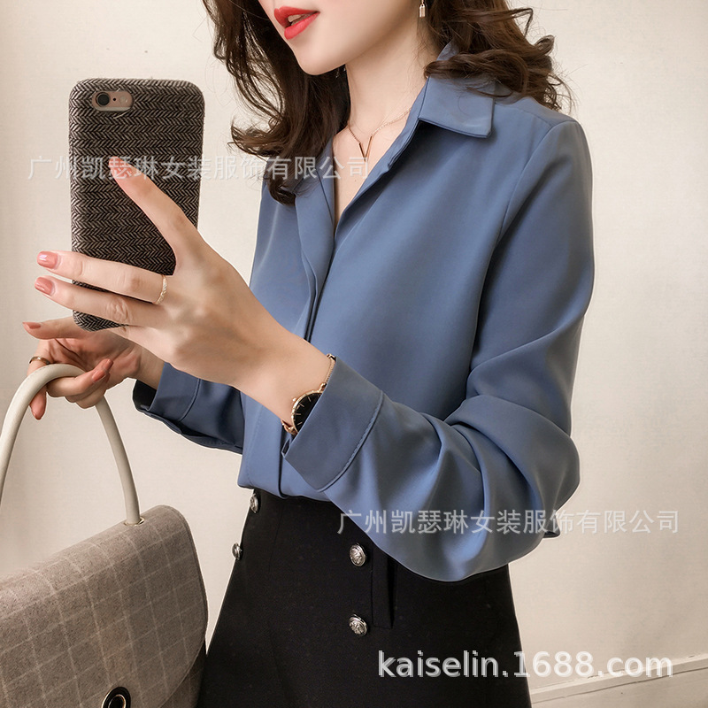 2 023 봄 여성의 새로운 한국 심플 브이넥 패션 솔리드 컬러 탑베이스 셔츠 긴팔 쉬폰 셔츠스토어 가기