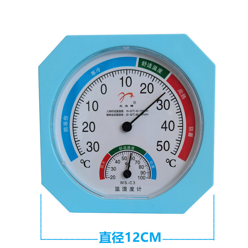 北双桥 指针温湿度计采用商超塑封吸塑无尘包装(装箱数量100个内含4个内箱25个产品毛重14公斤)箱体65*46*40MM.