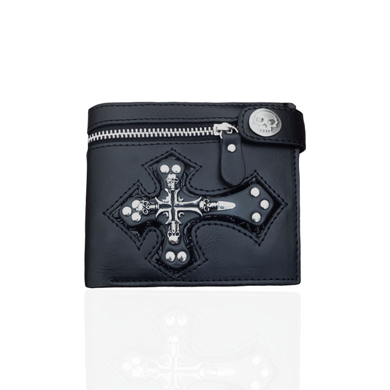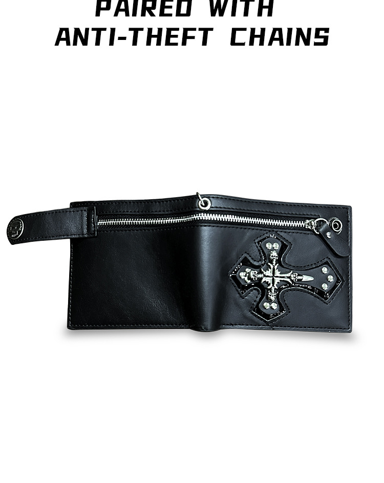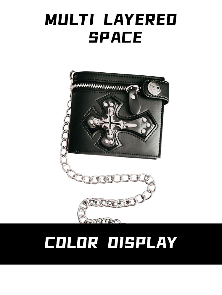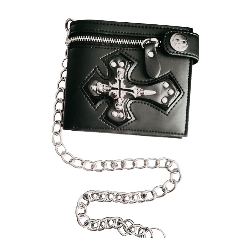 인기 있는 남성용 지갑 해골 십자가 도난 방지 체인 바이크 동전 지갑 리벳 지갑