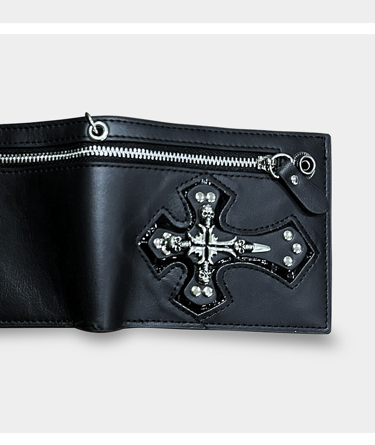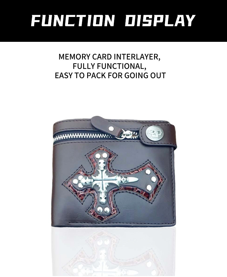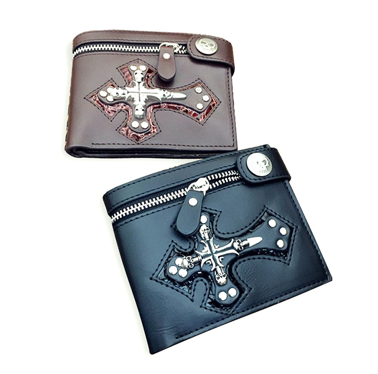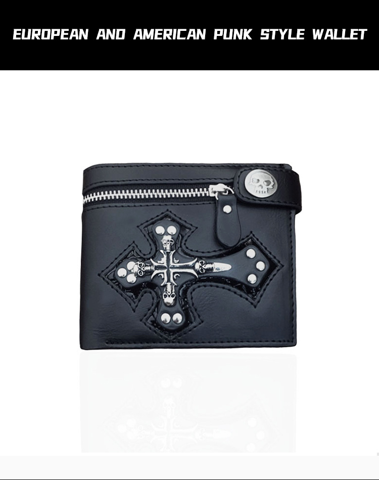 인기 있는 남성용 지갑 해골 십자가 도난 방지 체인 바이크 동전 지갑 리벳 지갑스토어 가기